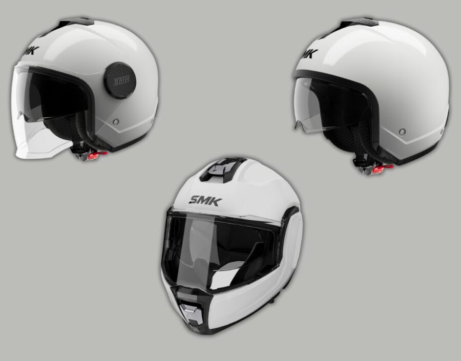 The first one is called the SMK Cygnus. It’s a flip-back helmet with the chin bar able to rotate 180 degrees. It can be used as a full-face and open-face helmet by riders. The shell is made from Energy Impact Resistant Thermoplastic (EIRT) and it also gets a multi-density EPS liner for added protection.
