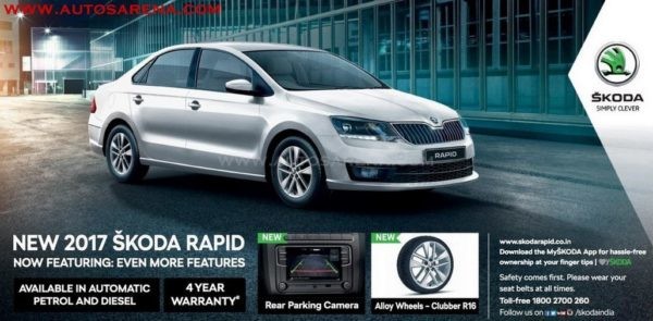 The 2017 Skoda Rapid is powered by either a 1.6-lire petrol engine or a new 1.5-lire diesel engine. Both the engines are paired with a 5-speed manual transmission as standard, while the petrol variant can be had with a 6-speed automatic, and the diesel variant is available with a 7-speed DSG transmission. The Rapid competes with the Honda City, the Maruti Suzuki Ciaz, the Hyundai Verna, the Volkswagen Vento and the Nissan Sunny.