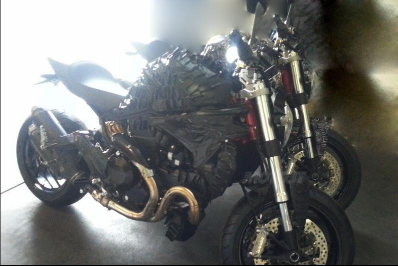 Italian Motorcycle Magazine Moto.it have managed to get a few spy shots of the soon to be launched Ducati 1198. Generously draped in camouflage, the exposed parts of the new Ducati Monster 1198- particularly the exhaust routing and the manifold laps would at the very first look remind you of the Ducati Diavel’s engine.
