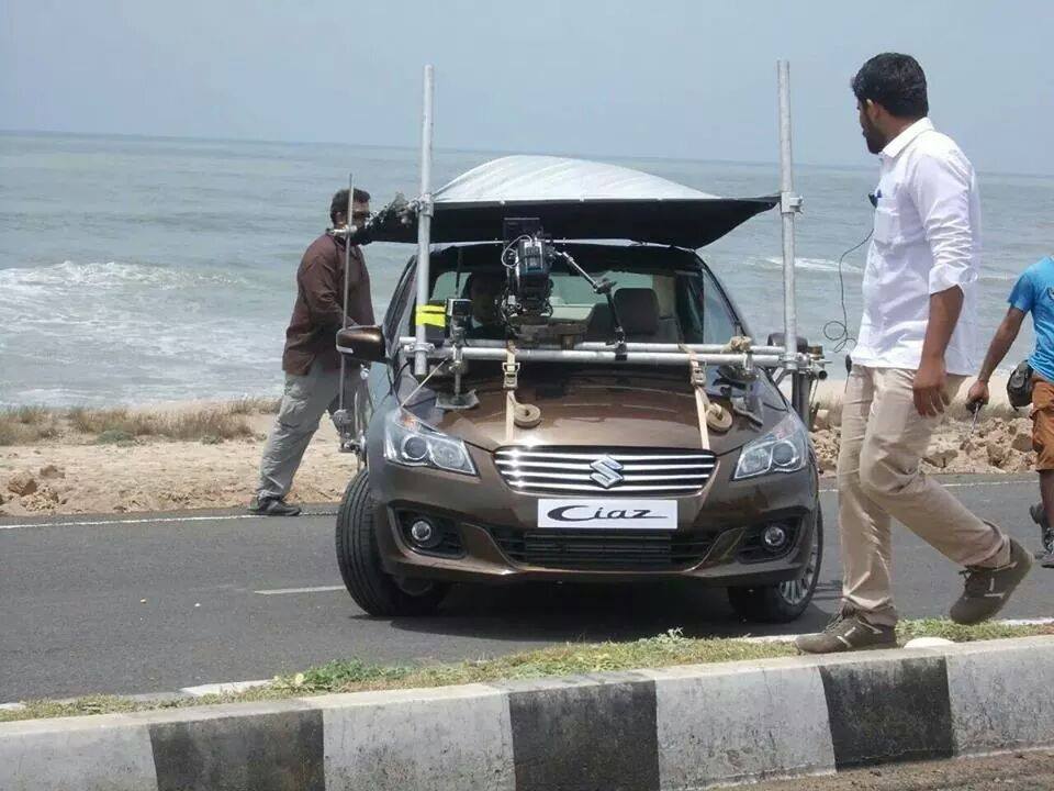 Soap manufacturers in India have some strange obsession with the Hindi film industry, car manufacturers are no different. The latest to join the list is the largest car manufacturer in India. The Maruti Ciaz sedan is about to be launched anytime soon and has been spotted being shot for its commercial at a scenic location, which appears to be either Pondicherry or a stretch on the NH 17 where it touches the Arabian Sea. However, we got to know it is somewhere in Gujarat. The commercial will feature young and popular movie star Ranveer Singh, who is seen in the pictures as a sharp, well dressed young achiever.