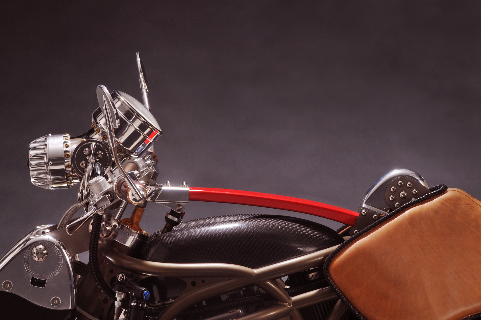 Designed by J. T. Nesbitt of Confederate fame, the Legacy looks brutally industrial, speckled with vintage styling cues. But that’s not the end of it – it’s a technological tour de force as well. Cradled amidst those steampunk themed appointments and carbon composite elements is a fuel-injected, water-cooled 1645cc Motus V4, which develops around 300 horsepower, albeit with a Rotrex centrifugal supercharger kit and a little bit of tuning.