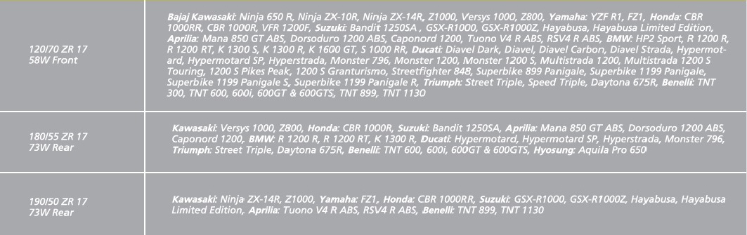 Here is a list of motorcycle on which the new Michelin tyres can be installed. Click to expand