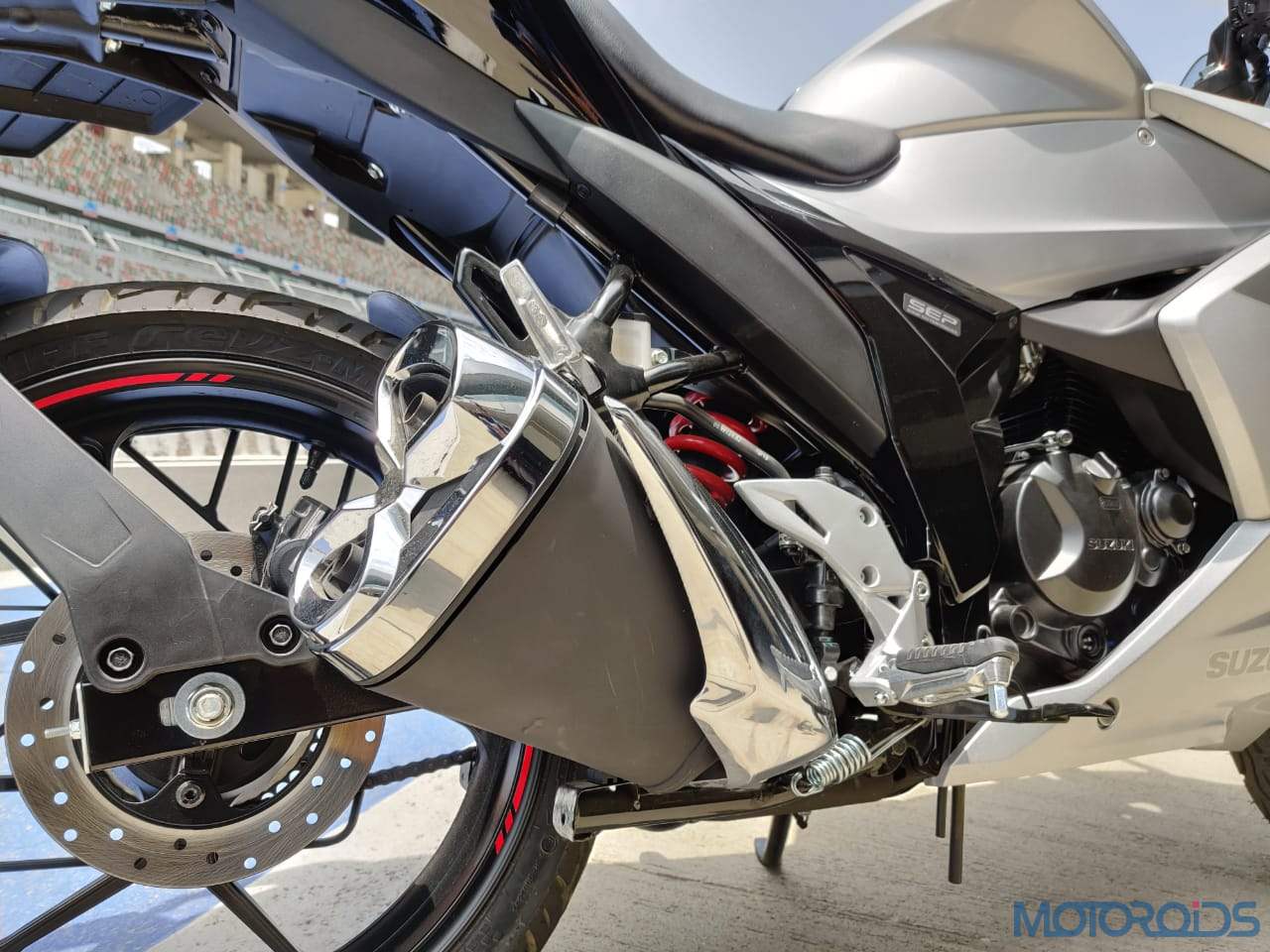 The Instrument console has two trip meters, a fuel gauge, a tachometer, a speedometer and an odometer along with a service reminder. But it doesn’t compute any fuel efficiency related data. Talking about efficiency, Suzuki claims a figure of 38.6 km/l for the Gixxer SF 250, however, this bike in our opinion can do 30 to 35 km/l in the real world. Fuel tank capacity at 12-litres feels like it falls short of another 3-litres it should’ve had space for.