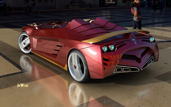 Specific information is missing, but the T6 makes a strong case for itself. With an Iron Man mask inspired front fascia and bodywork, this virtual roadster is all kinds of awesome! The rear is overly aggressive- apt for Mr. Stark and the interiors are smart yet minimal. Those mono spoke wheels are also pretty unique.