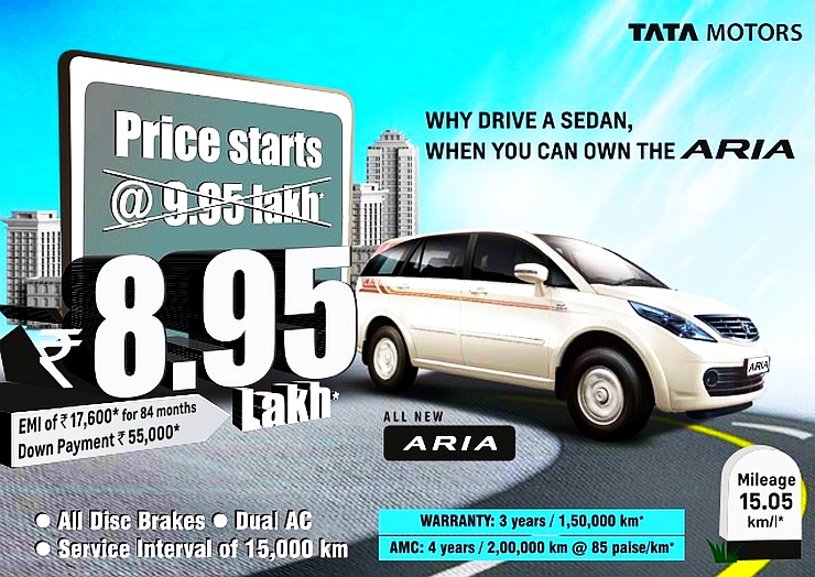 Tata Aria gets INR 1 lakh price cut, starts at 8.95 lakh