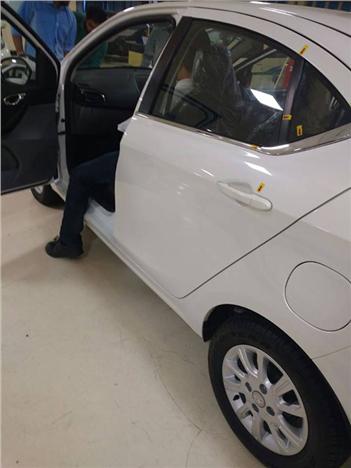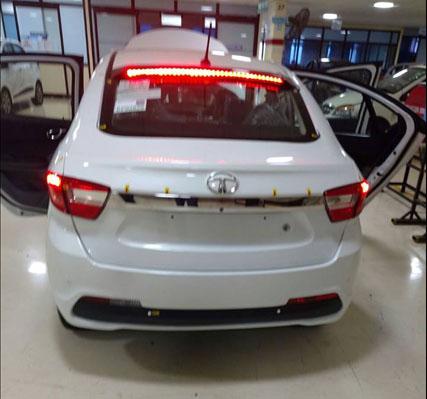 The sub 4 metre long compact sedan spotted here sports a shade of white, and in its production guise does away with the blacked out roof section that was earlier seen on the model displayed at the Auto Expo. The rest of the visuals have been honestly carried over from the concept, and include a chrome strip running between the tail lamps, an integrated spoiler, and a radio antenna. The smaller, production friendly wheels from the Tiago also tend to make the Kite 5 a bit fat from the sides, but the coupe-like silhouette does make it one of the better looking compact sedans out there.