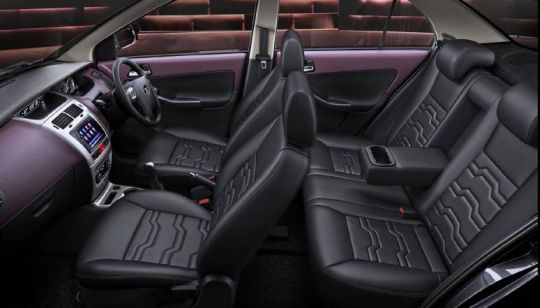 Rich Italian leather upholstery enhances the luxurious ambience of the Tata Manza Club Class’ best-in-class cabin space. The interiors have been tastefully adorned in Black and Plum.