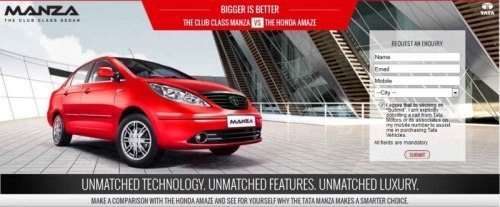 The new web campaign redirects you to Manza’s official website where a direct comparison between the Manza and the new Honda Amaze has been provided. The campaign, which says “Bigger is Better”, talks about Manza’s prices, specs and features in comparison with those of the Amaze. Tata has compared the Manza VX, the mid spec trim level, with the Amaze VX high end model.
