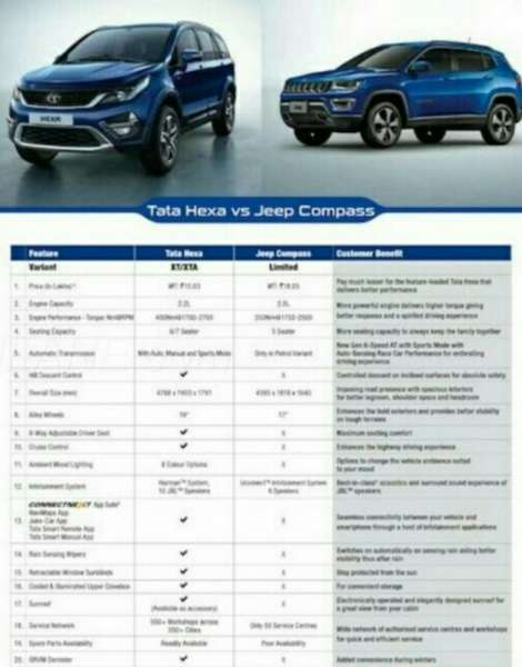 Tata Hexa is one of the products that falls in the same price bracket as the newly launched American SUV. But they hardly seem to be bothered by the arrival of the compass, or at least that’s what we can make out from their recently released tech-spec comparison.