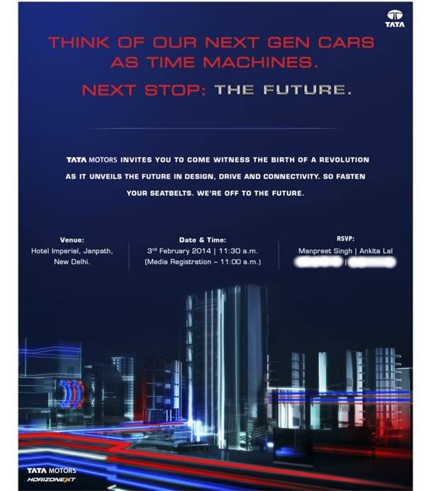 Tata Motors is organizing a pre-Auto Expo press conference in New Delhi. The company will preview its future cars and technologies at the exclusive press event. The cars and technologies unveiled at the press con will later be exhibited at the 2014 Auto Expo as well. While nothing specific has been said about the products and tech to be showcased, the invite clearly suggests that it will be a multi-product, multi new tech event. We are looking at the unveiling of the Zest (codename Falcon 5) compact sedan, the Bolt hatchback (codename Falcon 4) and the Nexon (earlier rumored as JUMP) compact SUV that we reported about a couple of days back. Tata Motors Zest / Bolt / Nexon should help tata Motors expand its product portfolio in the mainstream segment, which, of late has started looking stagnant. As always, we at Motoroids are covering the event live, and will update with information about the new products with relevant images and tech specs as soon as the event goes underway at 11:30 AM