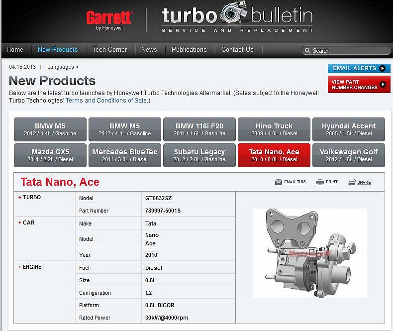 The diesel variant of the Tata Nano has to be among the most awaited car launches of recent times. While the car won’t enter the highly competitive small car market of India before 2014, speculations regarding to car have already been abounding in the cyber space. Concrete details about the diesel engine of the Nano D have now emerged on the cyber space. The diesel variant of the Nano would sport an 800cc twin cylinder engine that will feature a Garrett turbocharger. It may be noted that Garrett is now a part of the Honeywell group.