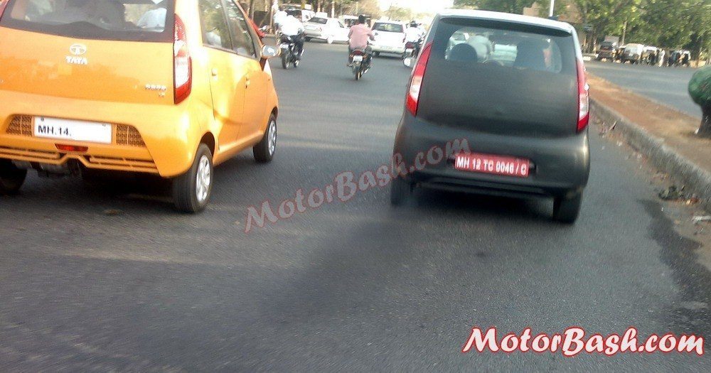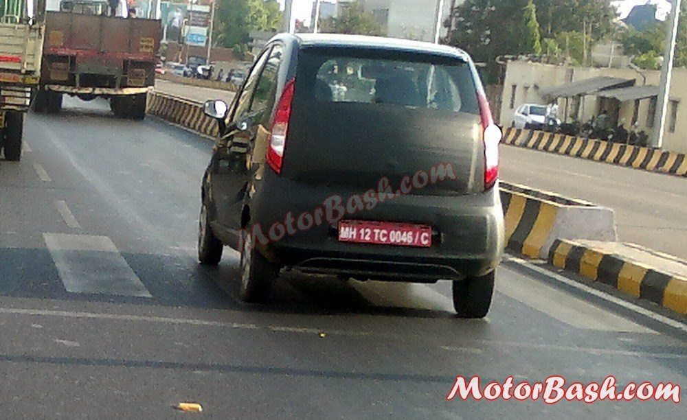 The Nano diesel has been spotted testing again. The test mule was spotted near Tata’s Pimpri facility near Pune. As can be made out through these pics, the Nano diesel sports a revised rear bumper which could have been necessitated by the bigger diesel engine that the car has to accommodate at the back. Another minor visual difference is that the Nano diesel has its exhaust pipe in the left, instead of having it in the center, like the petrol Nano.
