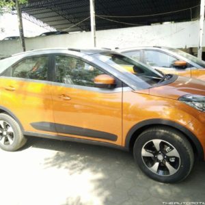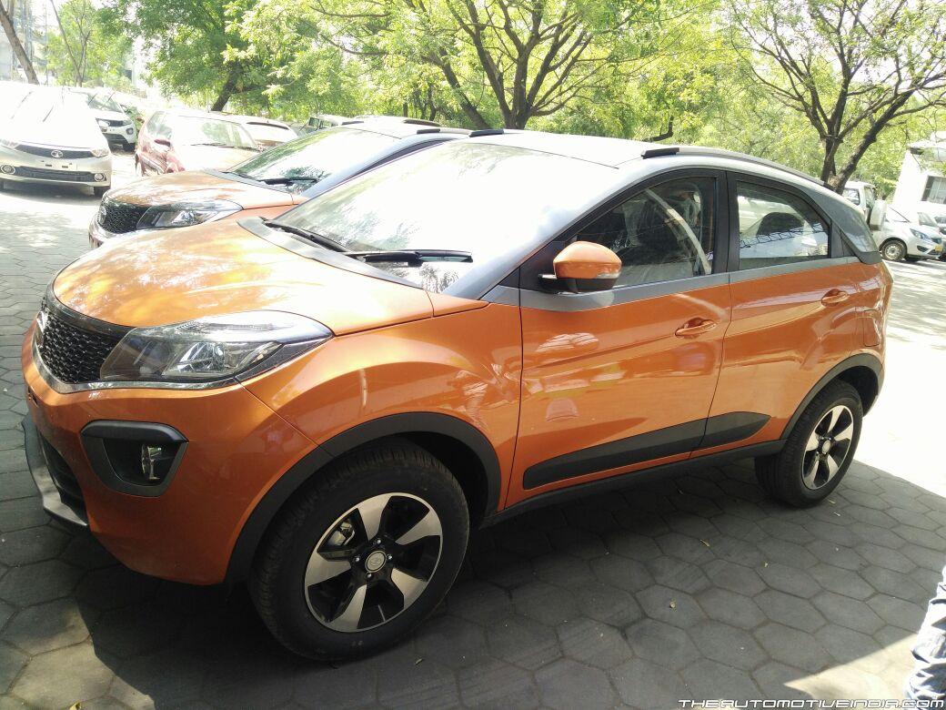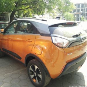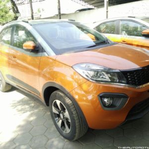 Ahead of its launch that is likely to take place in the next few weeks, the Tata Nexon AMT variant has begun arriving at dealer yards in the country. Seen in the images are a few units of the Nexon AMT finished in a dual tone shade of Etna Orange and contrast grey roof.