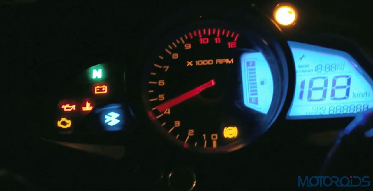 The upcoming Bajaj Pulsar RS200 is scheduled for a launch on March 26, 2015 and the Indian two-wheeler major has begun promoting this fully faired motorcycle through a teaser video. Interestingly, the teaser video reveals that the Pulsar RS200 will receive ABS! As you can see in the photograph below, an ABS ring can be spotted on the front wheel. Moreover, an ABS symbol can also be seen on the instrument cluster. We believe that to cater to a larger audience, Bajaj will offer ABS as an optional extra and not as a standard fitment. Expect to see the ABS variant to carry a premium of upto Rs 15,000-20,000.