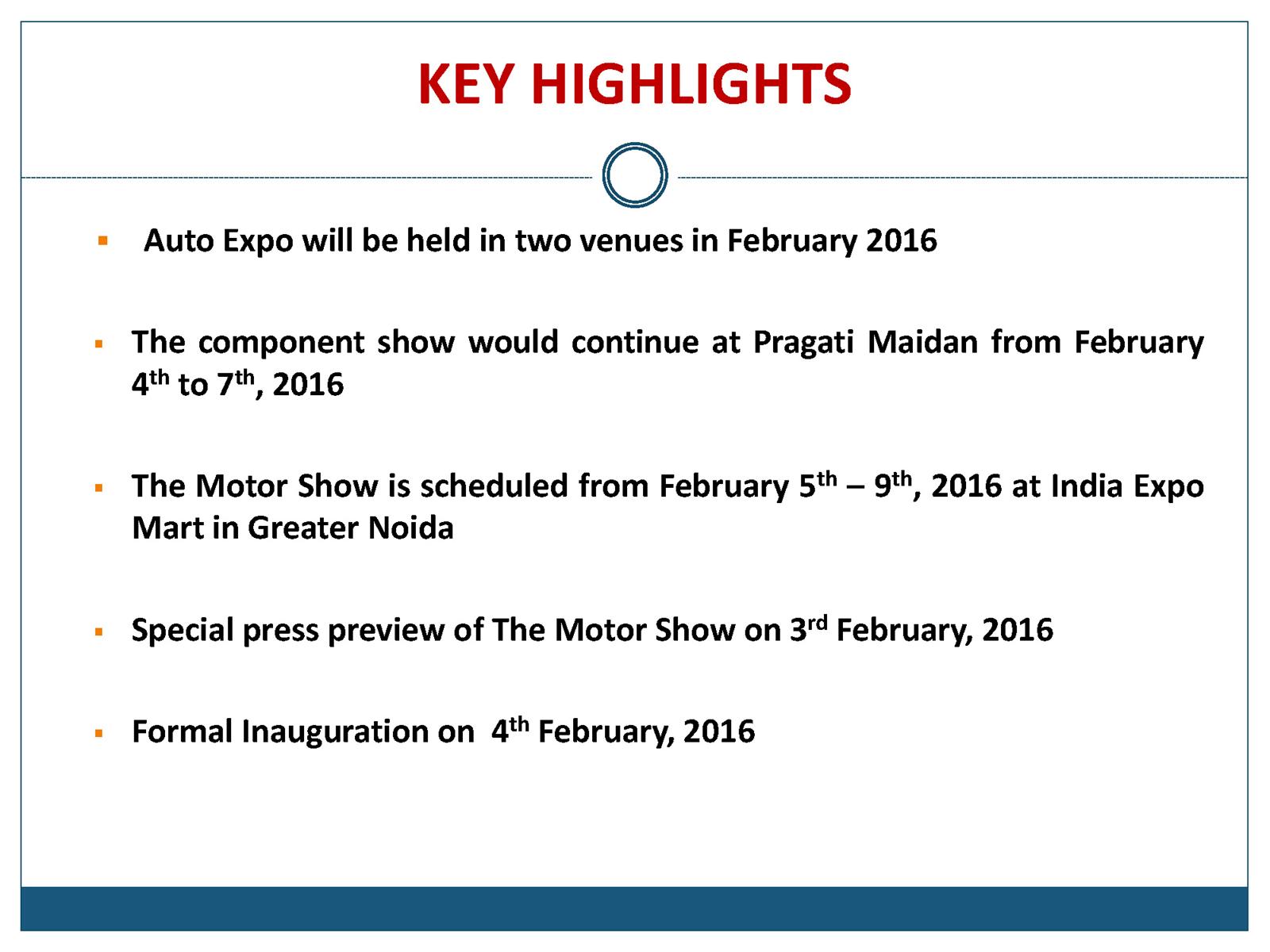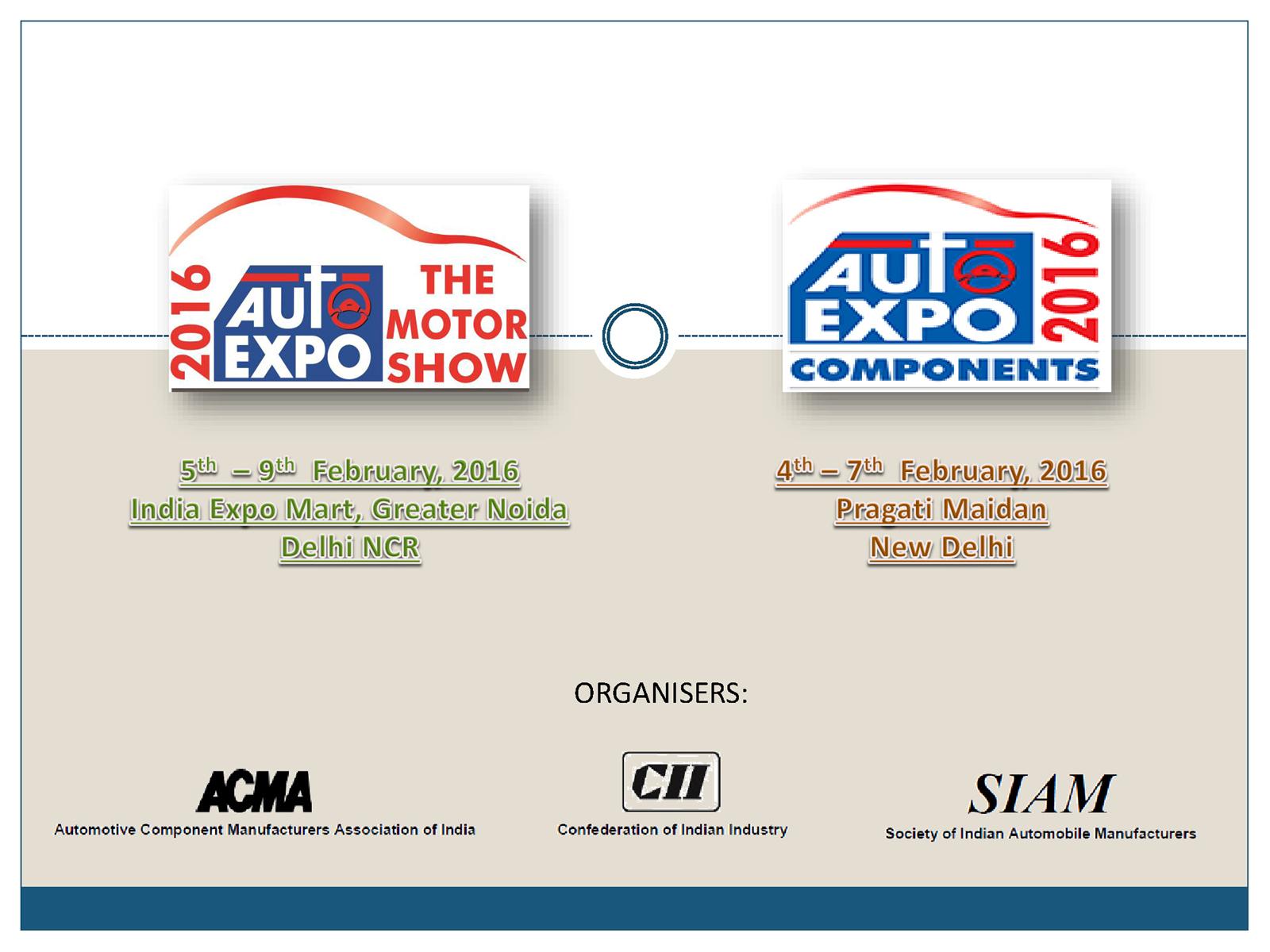 Asia’s largest automobile convention, Auto Expo — The Motor Show 2016 organized by Society of Indian Automobile Manufactures (SIAM) jointly with the Automotive Component Manufacturers Association of India (ACMA) and Confederation of Indian Industry (CII) will be held from 5th- 9th February, 2016 at the India Expo Mart Limited (IEML) in Greater NOIDA.