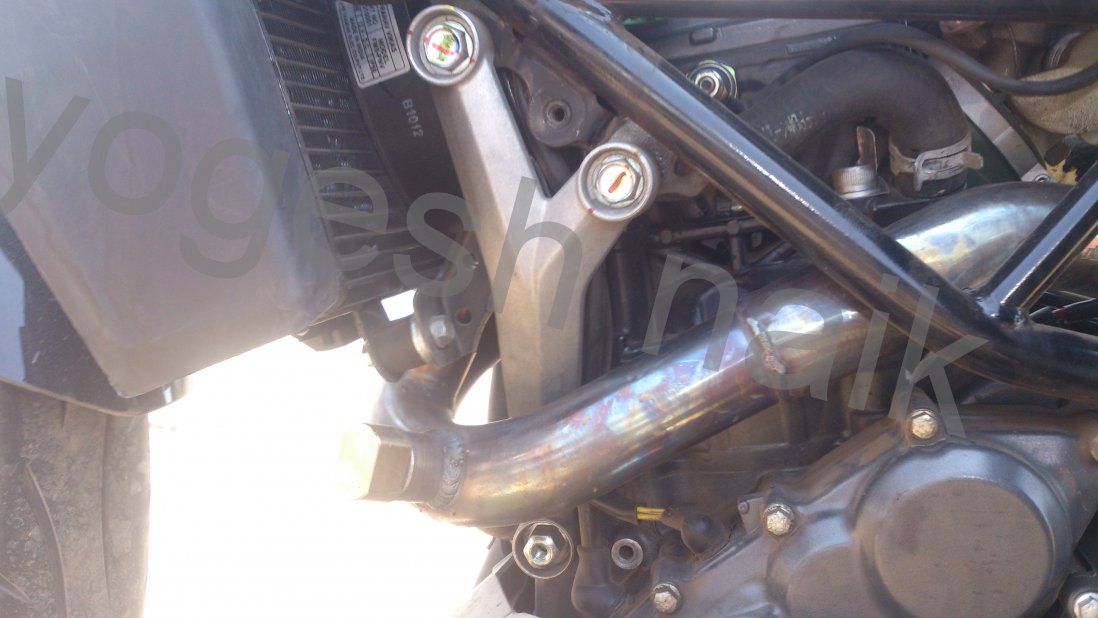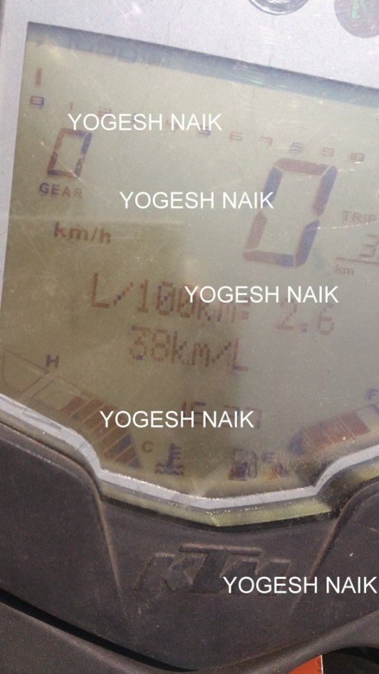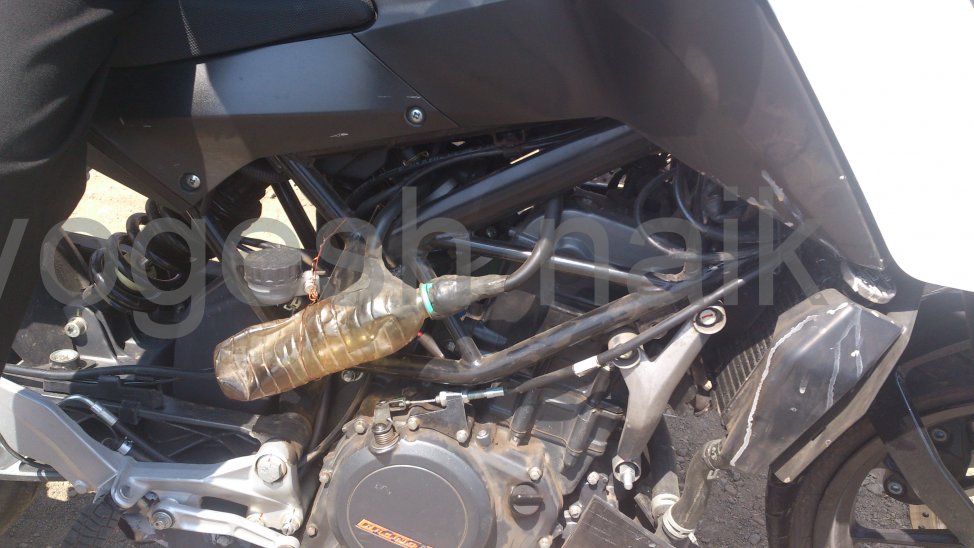 The most interesting of these pics has to be the one which is showing the display with the 38 kpl as indicated mileage figure! The bottle test shows that the Duke 390 might be on a mileage run, but even if the bike is being ridden sedately on the test runs, 38 kpl for a 44 bhp bike does sound fabulous.
