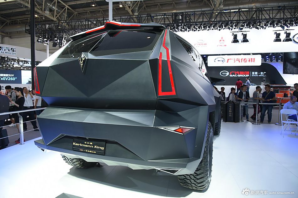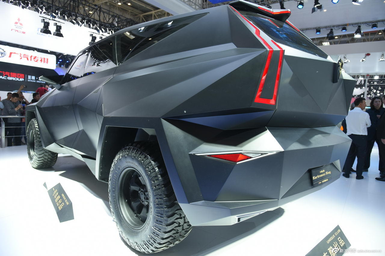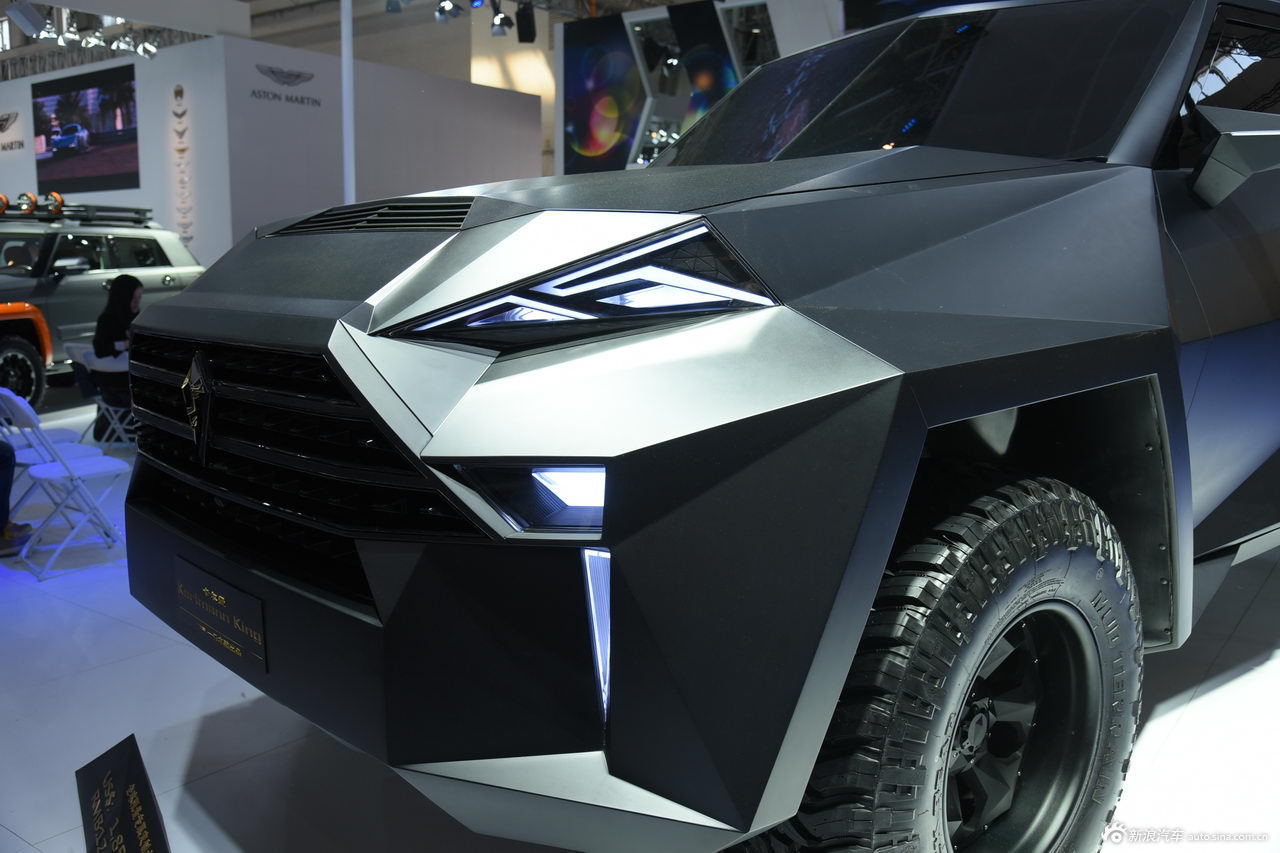 With bodywork that could shame a Lamborghini Reventon with its sheer number of intersecting, angular surfaces, this Chinese super-SUV wants you to forget the Hummer H1 that you were ogling at the other day, or even the king-sized Dartz models from Russia. It’s called the Karlmann King, and made by Beijing based IAT Automobile Technology using Ford F-450 pick-up underpinnings. Look away already, lest your corneas get lacerated by the matte black sharpness of the exteriors.