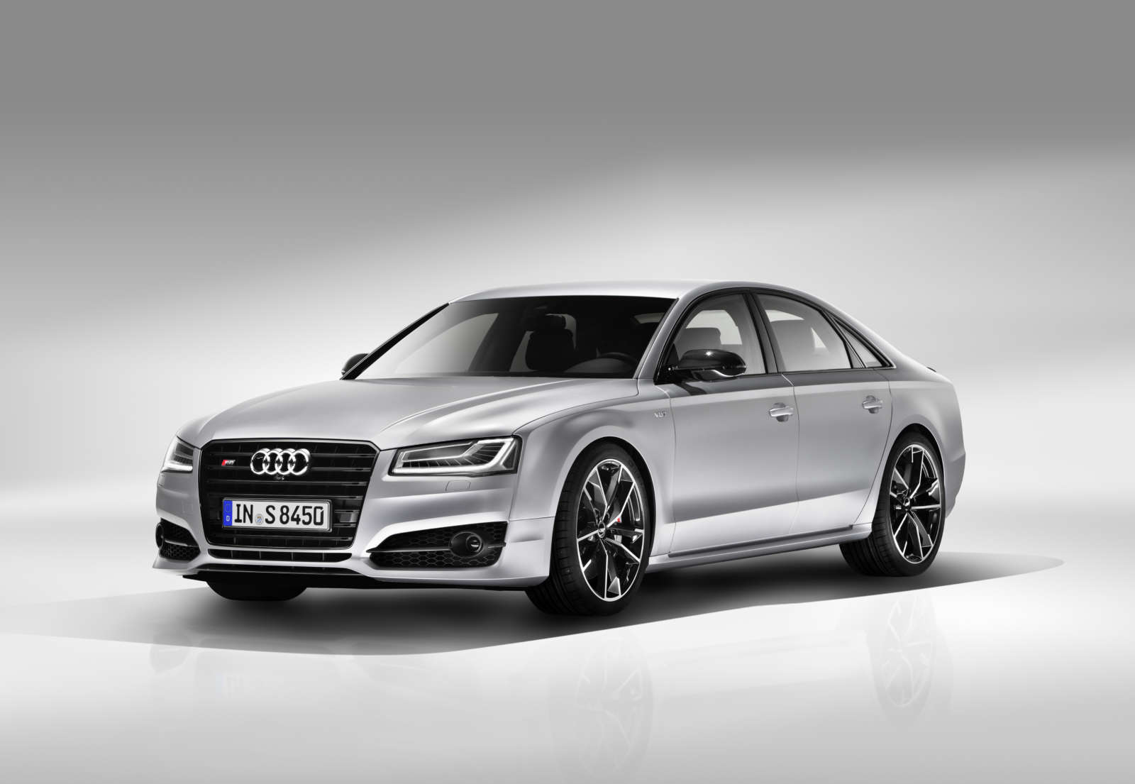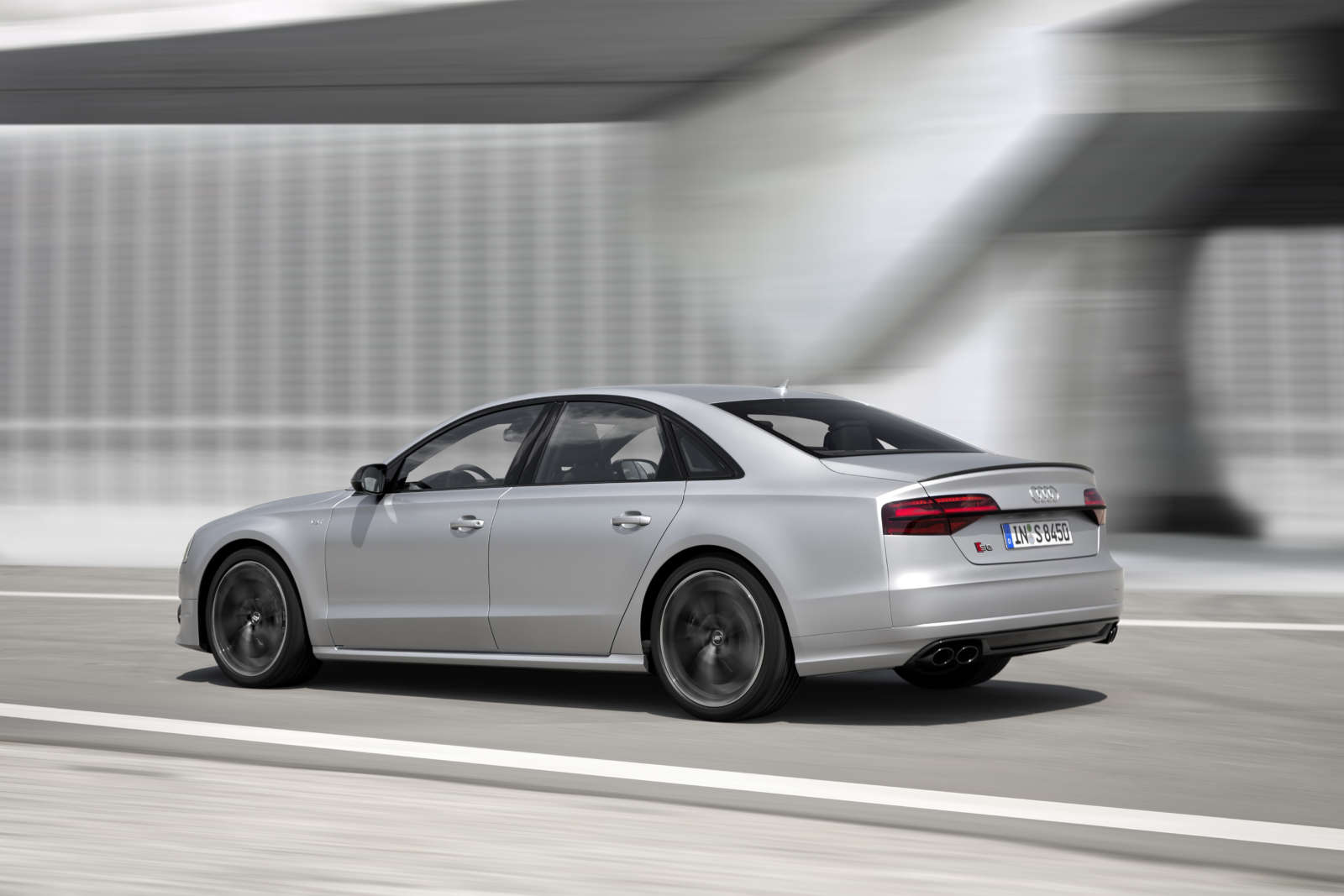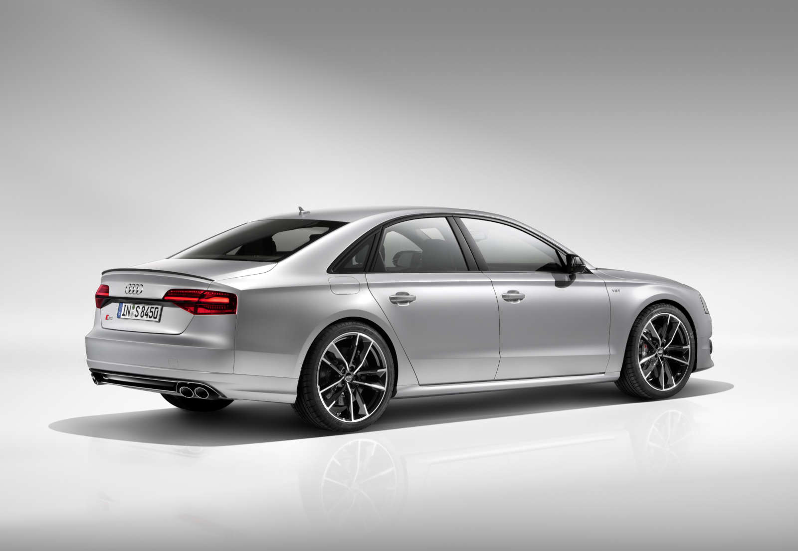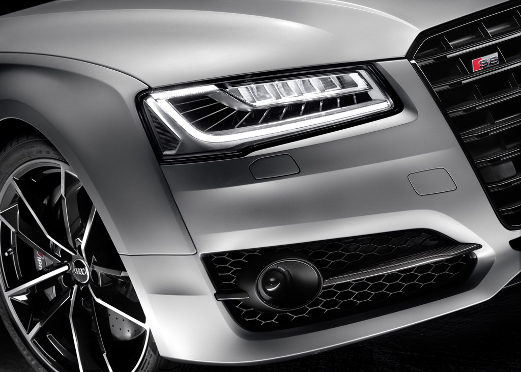 The rear diffuser, Singleframe front grille, air inlets and window trims are now finished in gloss black, as are the mirror housings. Other distinctive design characteristics of the S8 Plus also include darkened tail lights and a rear lip spoiler in body colour.