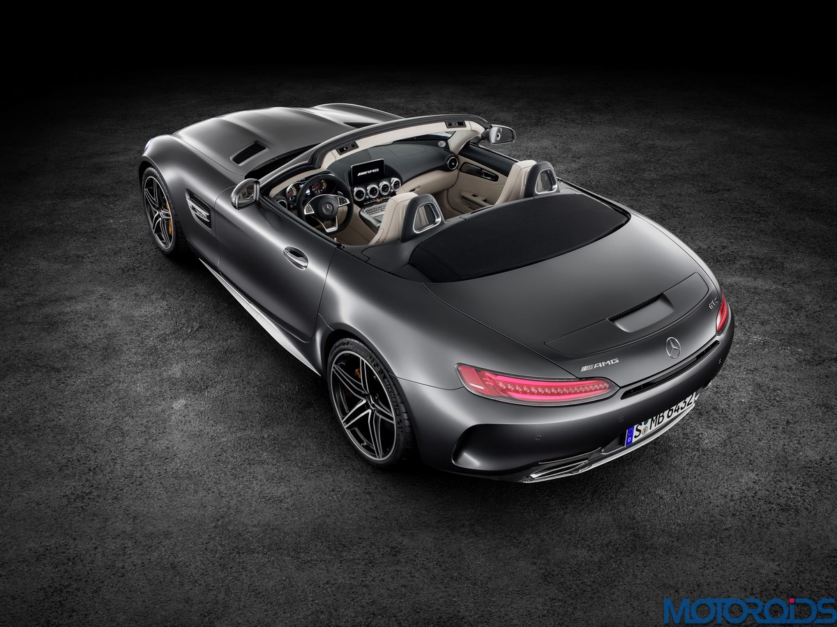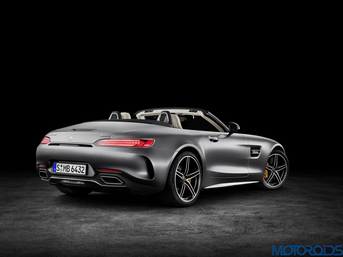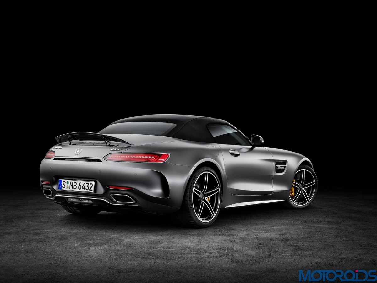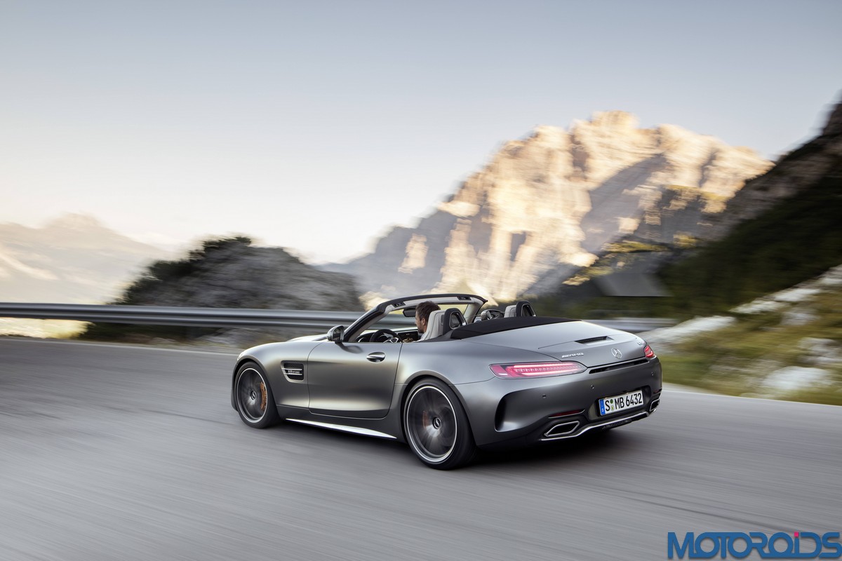 Visually, the Roadsters can be differentiated from their hard topped siblings with their AMG Panamericana grille with 15 chrome-plated, vertical bars, a new front apron, larger outer air inlets, along with the new 19-inch and 20-inch AMG light-alloy wheels in a 5-twin-spoke design. The rear end of the AMG GT C Roadster is wider by 57 mm compared to the AMG GT Roadster. This is exactly the width of the AMG GT R. Compared to the AMG GT Roadster, the AMG GT C Roadster also gets larger wheels and a wider track. Both Roadster variants feature a rear spoiler integrated into the boot lid. This is electrically extended and retracted at defined speeds, depending on the selected transmission mode.