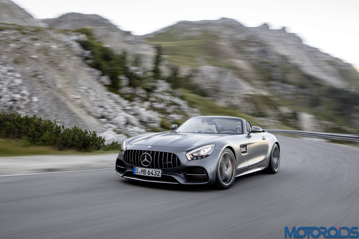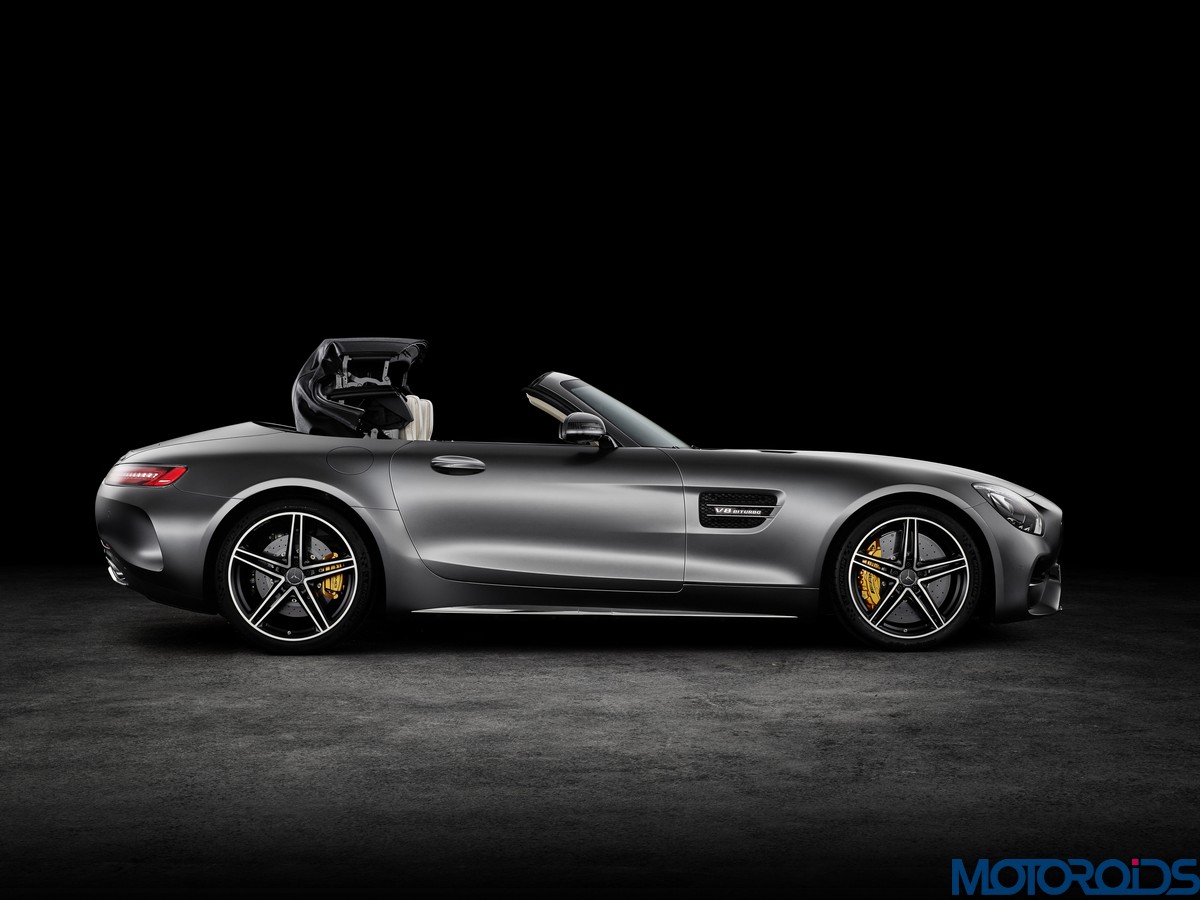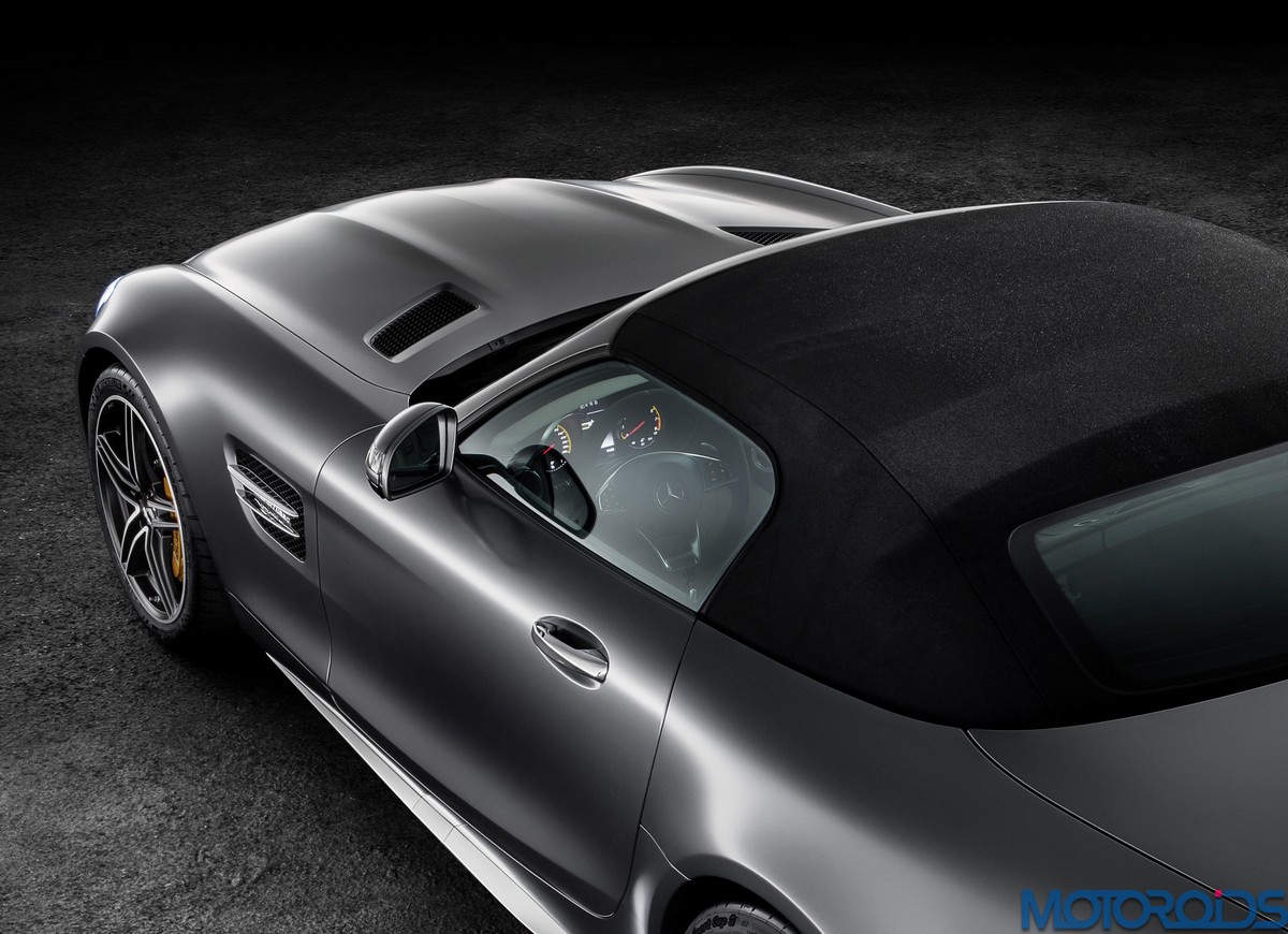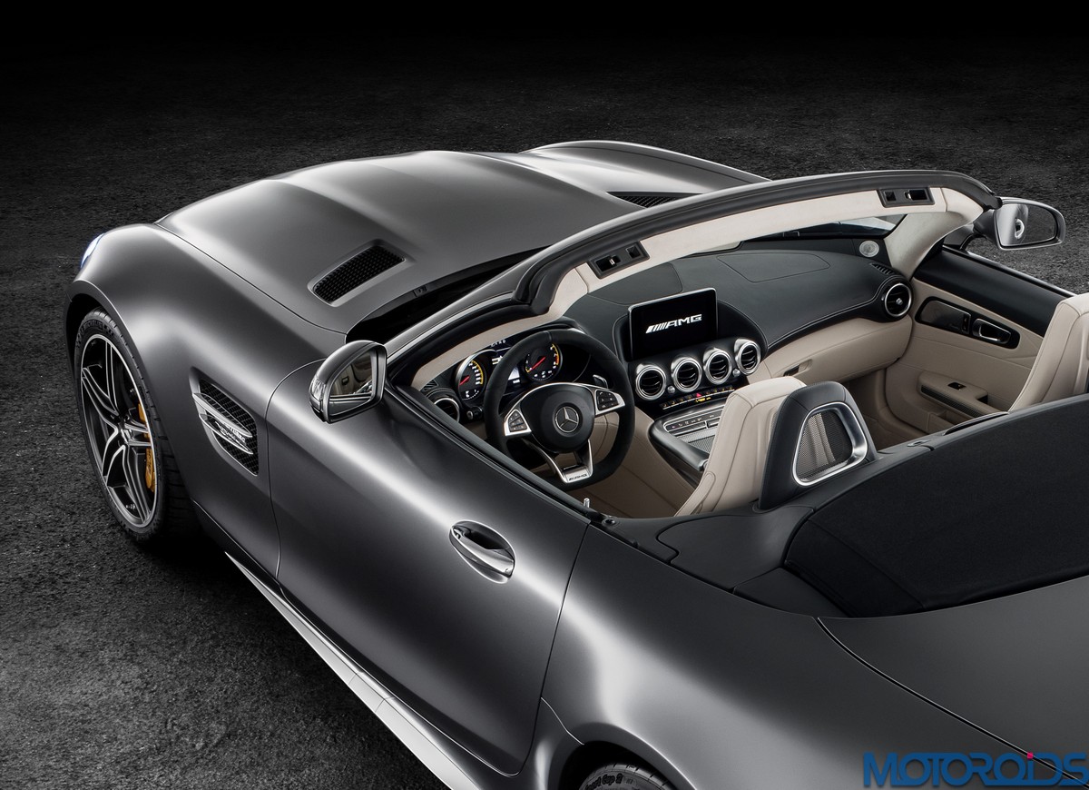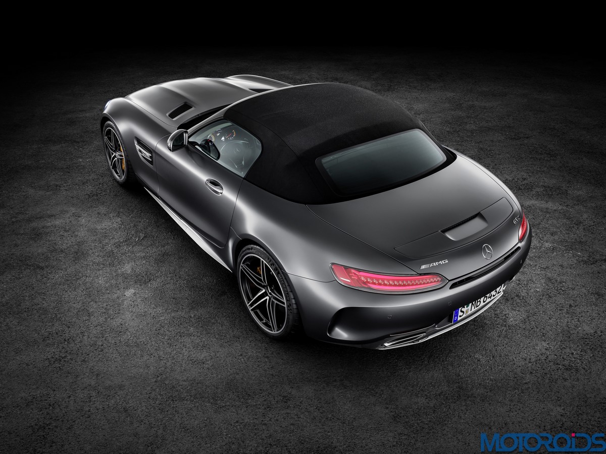 Visually, the Roadsters can be differentiated from their hard topped siblings with their AMG Panamericana grille with 15 chrome-plated, vertical bars, a new front apron, larger outer air inlets, along with the new 19-inch and 20-inch AMG light-alloy wheels in a 5-twin-spoke design. The rear end of the AMG GT C Roadster is wider by 57 mm compared to the AMG GT Roadster. This is exactly the width of the AMG GT R. Compared to the AMG GT Roadster, the AMG GT C Roadster also gets larger wheels and a wider track. Both Roadster variants feature a rear spoiler integrated into the boot lid. This is electrically extended and retracted at defined speeds, depending on the selected transmission mode.