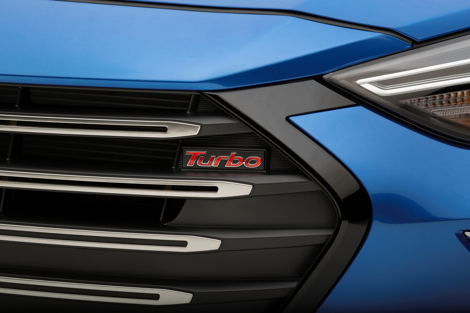 Exterior upgrades in the Elantra Sport come in the form of an aggressive, new front bumper with gaping air dams on either side of the trapezoidal grille that now features blacked out borders and slats. The fresh bumper-work also lays the ground for LED fog lamps and slim chrome trims that ‘float’ across the giant air dams. New side skirts adorn the sides, while the rear end gets a sportier bumper with a diffuser like mid-section and dual exhaust tips. Bigger, multi-spoke wheels fill up the Sport’s arches.