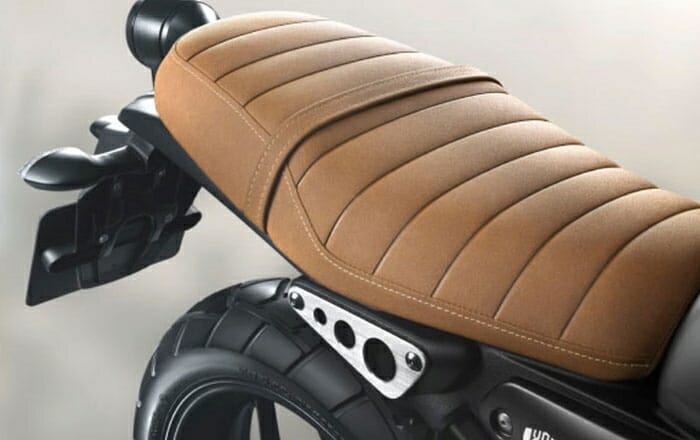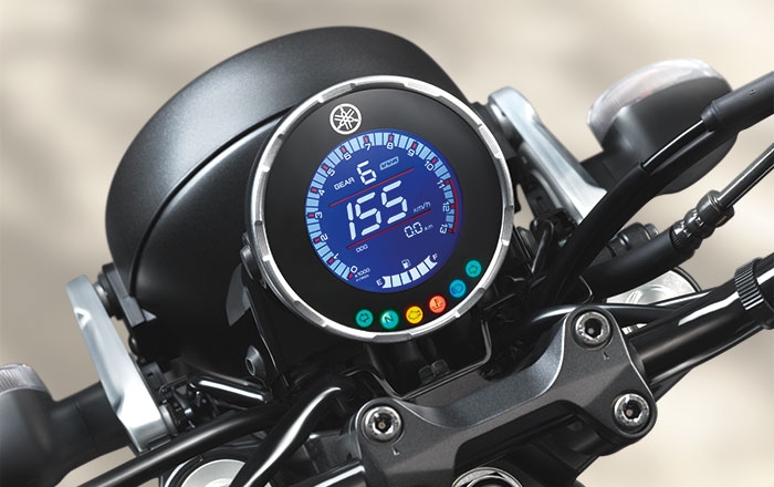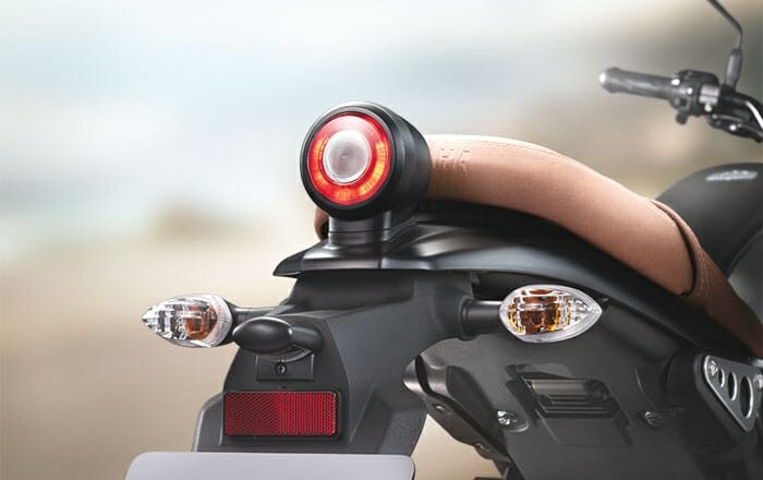 The Yamaha XSR155 gets an all-digital, blue-backlit, circular display for instrumentation and to go with it, a tiny LED tail light behind the saddle, a’la custom motorcycles. In terms of power, the motor is the same as the R15 and here too, the 155cc motor cranks out 19.3 PS and 14.7 Nm of torque, mated to a 6-speed gearbox with a slip & assist clutch. If you haven’t noticed by now, the end-can here is different and does look like the nozzle of a big machine gun.