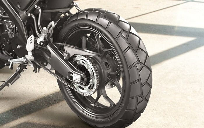 This retro but new bike might be similar to the R15 and the MT-15, however, it has a slightly wider handlebar and compared to the MT-15, the wheelbase is a tad tighter. This bike gets dual-purpose rubber, and the ground clearance is 15mm more. Tells you why they’ve added a bash plate underneath.