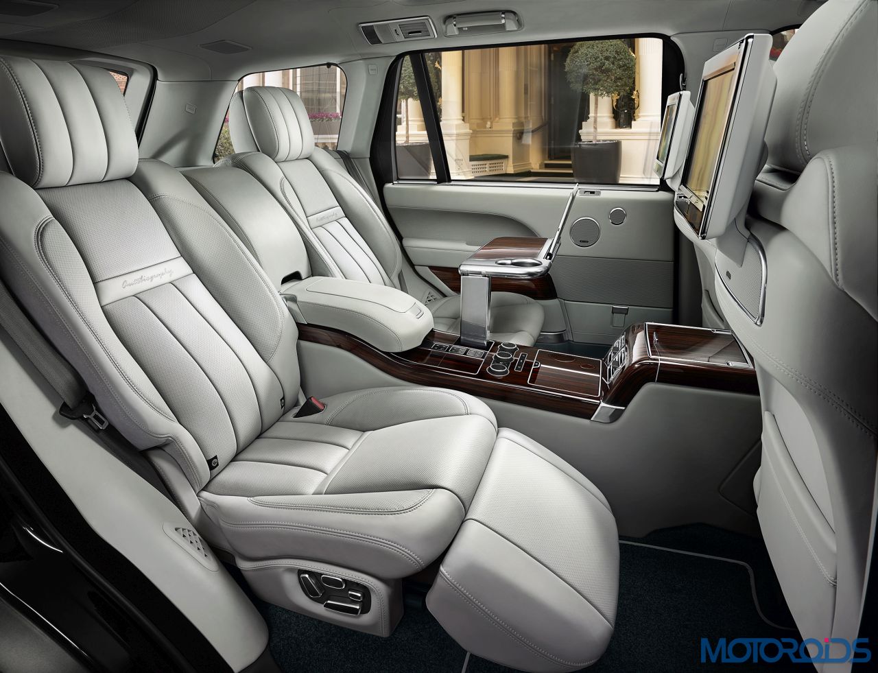 On the inside, much of the driver’s switchgear, including the start-stop surround and rotary controls, are machined from solid aluminium with knurled details, as are the foot pedals. This detailing continues to both the front and rear centre consoles. New armrest adjusters not only bring a similar level of machined detail, but also make them even easier to use. Rear-seat passenger section receives a chiller compartment and powered deployable tables. New to Range Rover for 2016 Model Year, the SVAutobiography offers the option of a sliding loadspace floor. Made aluminium and a choice of veneer options, the floor extends rearwards ease of use for loading and unloading.