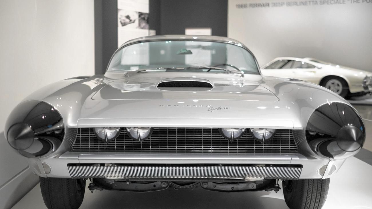 This was Harley Earl’s last concept vehicle before his retirement in 1958. After Earl’s retirement, with Mitchell as Vice President and head of design, the Cyclone’s fins were cut down, the taillights moved to the bumper ends, the hubcaps changed, the bubble top removed and the pearl white paint changed to silver. The car was then known as the 1964 Cadillac Cyclone XP-74 Concept. Cyclone Concept is still owned by General Motors, and is currently on display at the company’s Heritage Center where it is pictured. From time to time it is taken out for public appearances where it continues to amaze the crowds, just as it did years ago.