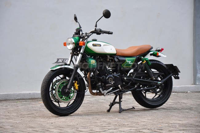 The custom motorcycle rides on a pair of Bridgestone Battlax BT45 tyres, wrapped around Kawasaki Ninja 250’s rims. The fit and finish seems pretty well-done in the images while green/white the paint-job and the contrasting coloured seat is a neat, retro-styled combination. There is no word about any mechanical updates and we expect the output figures to be same as on the stock motorcycle.