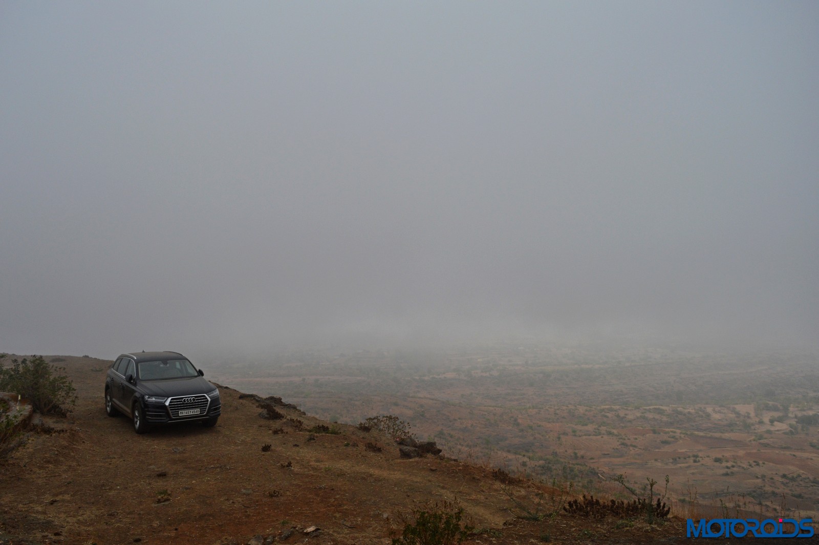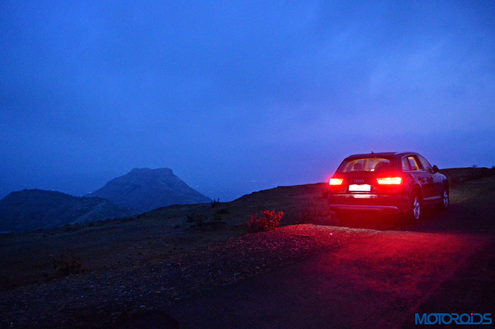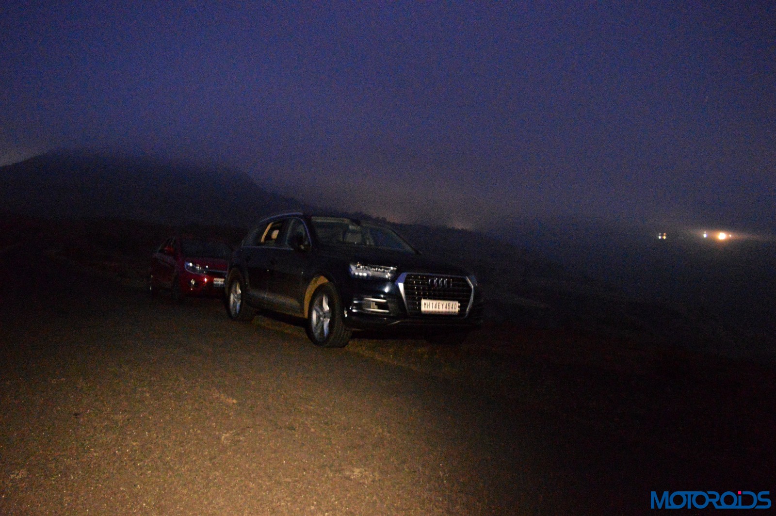 Once the group left the highway to begin its ascent on the ground zero, the real comfort and performance, coupled with the reliability of the car was put to test. The comfort level scored an eight out of ten throughout the trip, two points being deducted for the placement of the spare wheel, after all one cannot simply nudge a 255/60 R18 sized wheel for some extra side space without being met with some stiff opposition. The 600 Nm of Torque ensured the performance received full marks. A little extra push on the throttle, even during steep ascent, caused a headrush and a sense of a hook being jerked from behind the navel. This kind of adventure drive on the top of a hill at midnight did not compromise on the safety, thanks to an array of safety features on the big Audi.