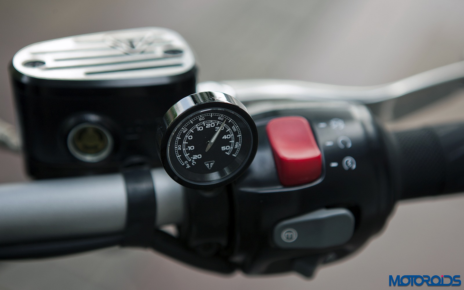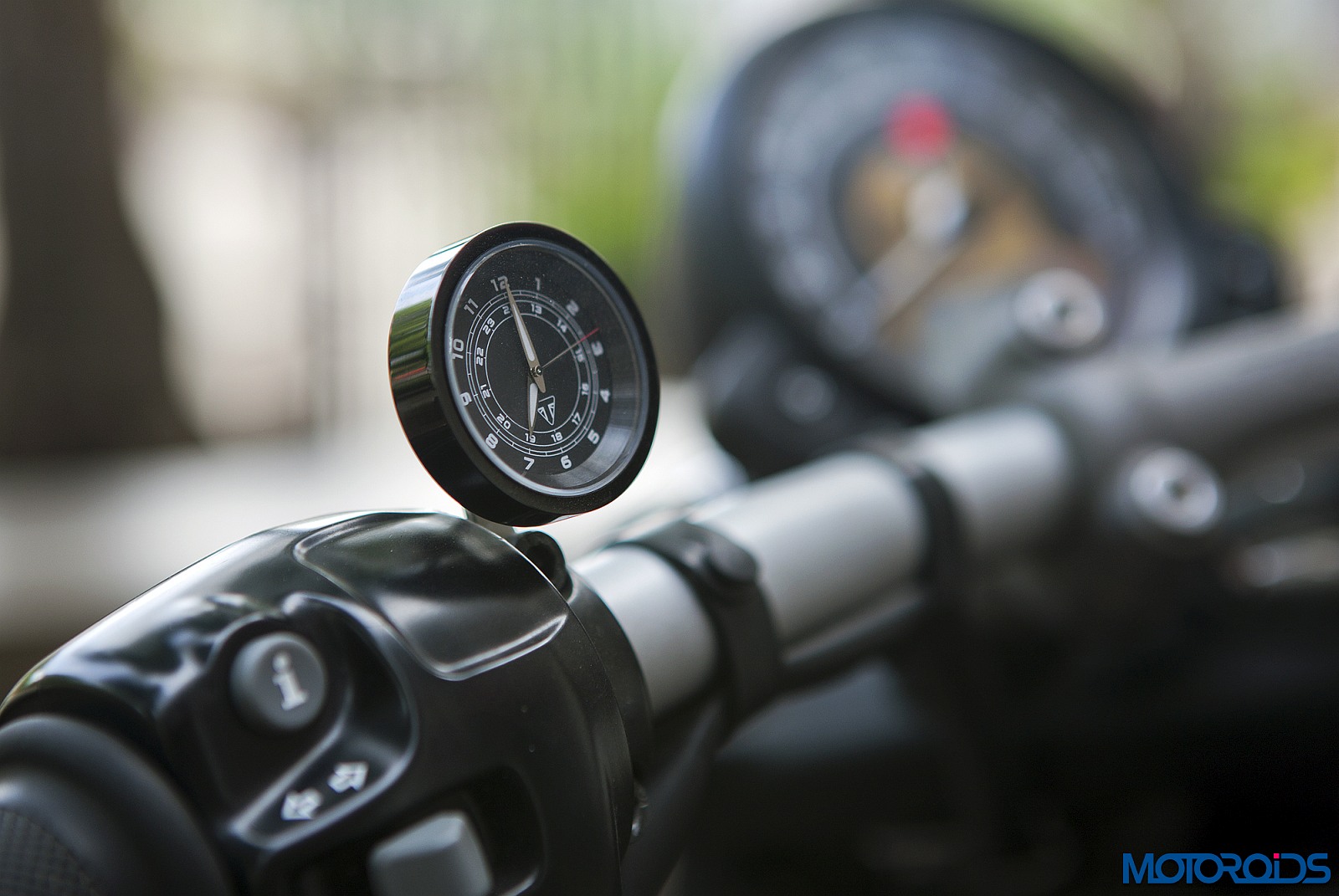 You get a more sculpted fuel tank with knee recesses. However, the capacity of the fuel tank is reduced considerably to 9 litres instead of the 14.5 litre tank on the T120. This seriously limits the range of the bike and may an issue for those who wish to take it out for longish rides. With an efficiency of about 17 kmpl that tank capacity translates into a sub 200 km range – which isn’t much.