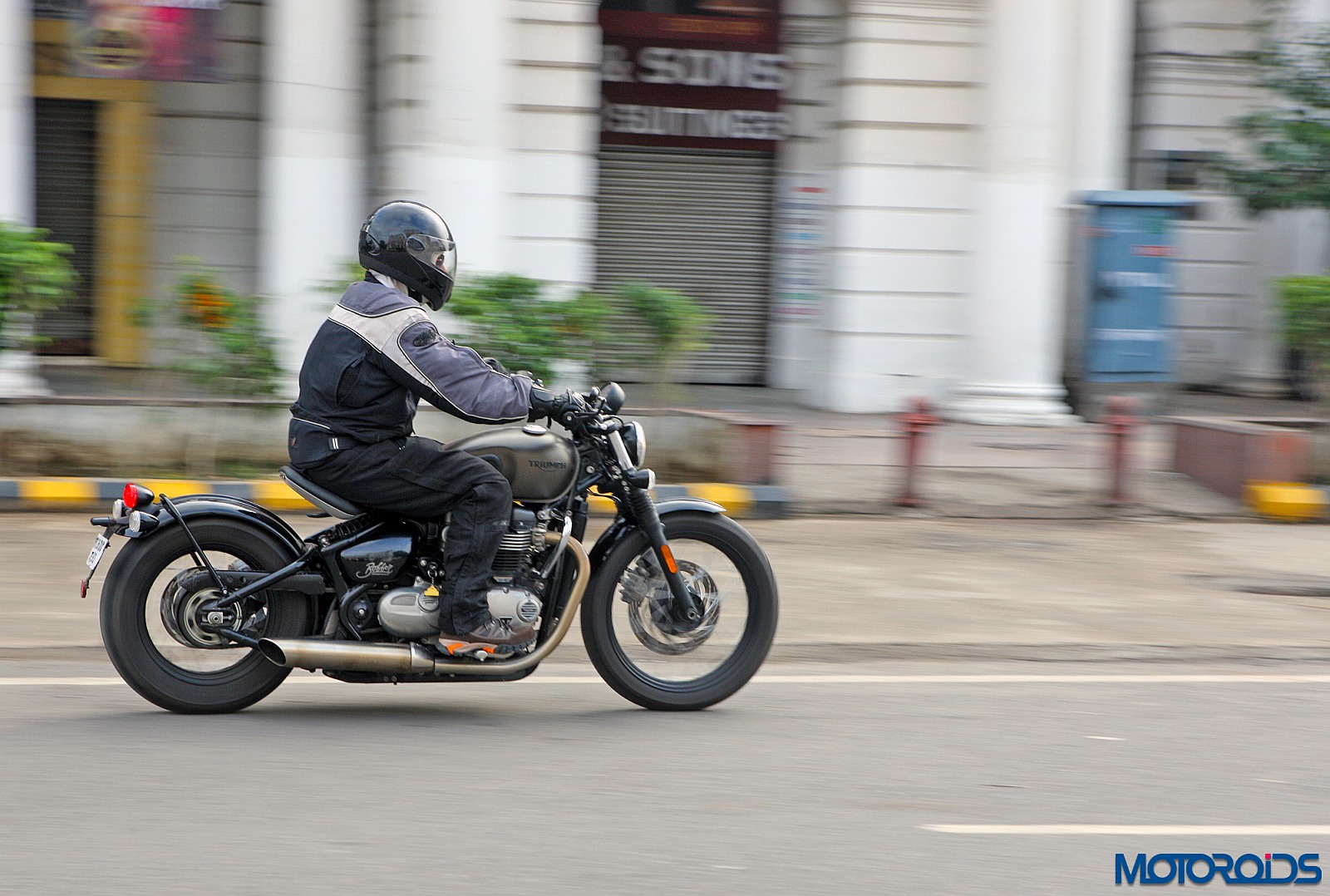 Gear shifts offer good feedback without being clunky. Being low slung, the sensation of speed is pretty phenomenal. I had ridden a very similar bike – the Indian Scout Sixty a few months ago and I must say that I liked the Bonneville Bobber better. The Bobber feels very connected to the road, and very much in control even at the upper extremes of its speed.