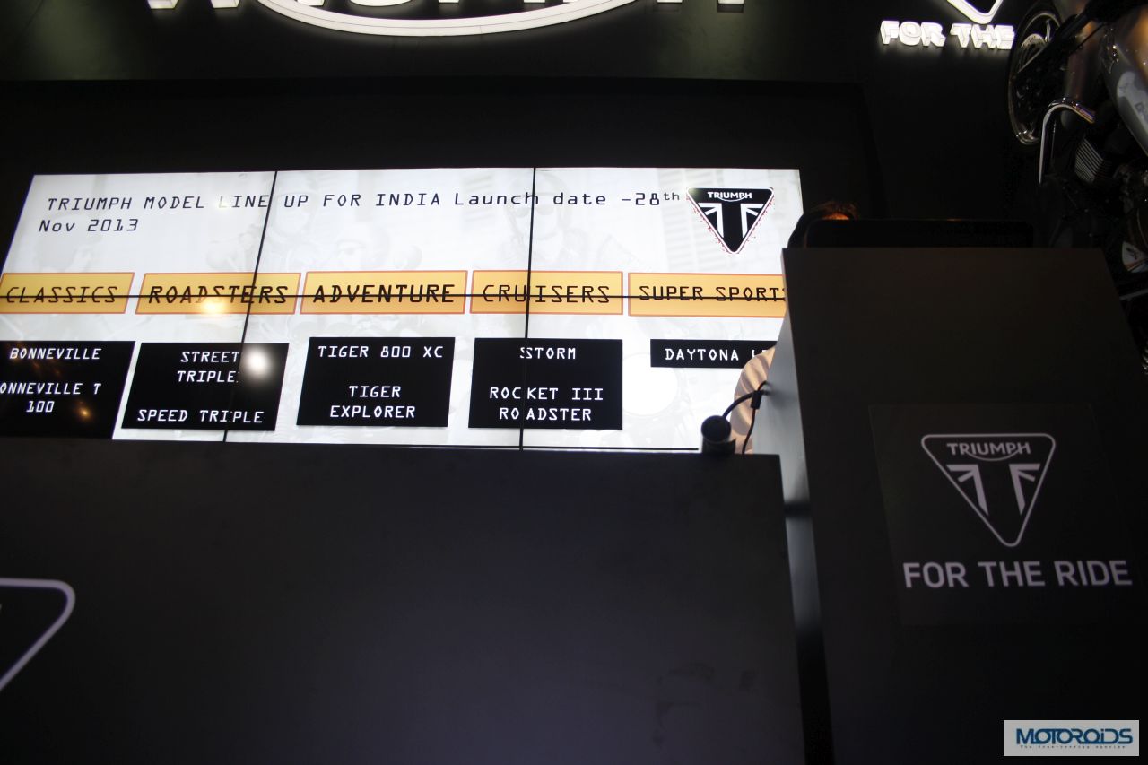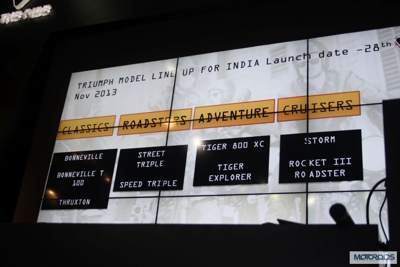 With the launch of the 675 Triumph Motorcycles now have 11 motorcycles on sale in the Indian market. The much sought after line-up includes the classic Bonneville and Bonneville T100, the legendary Speed Triple, the largest production motorcycle the Rocket III Roadster, the class leading Street Triple, the cool café racer the Thruxton, the go anywhere Tiger 800 XC and Tiger Explorer, the stripped back and black Storm and the king of super sports bikes, the Daytona 675 and the 675R.