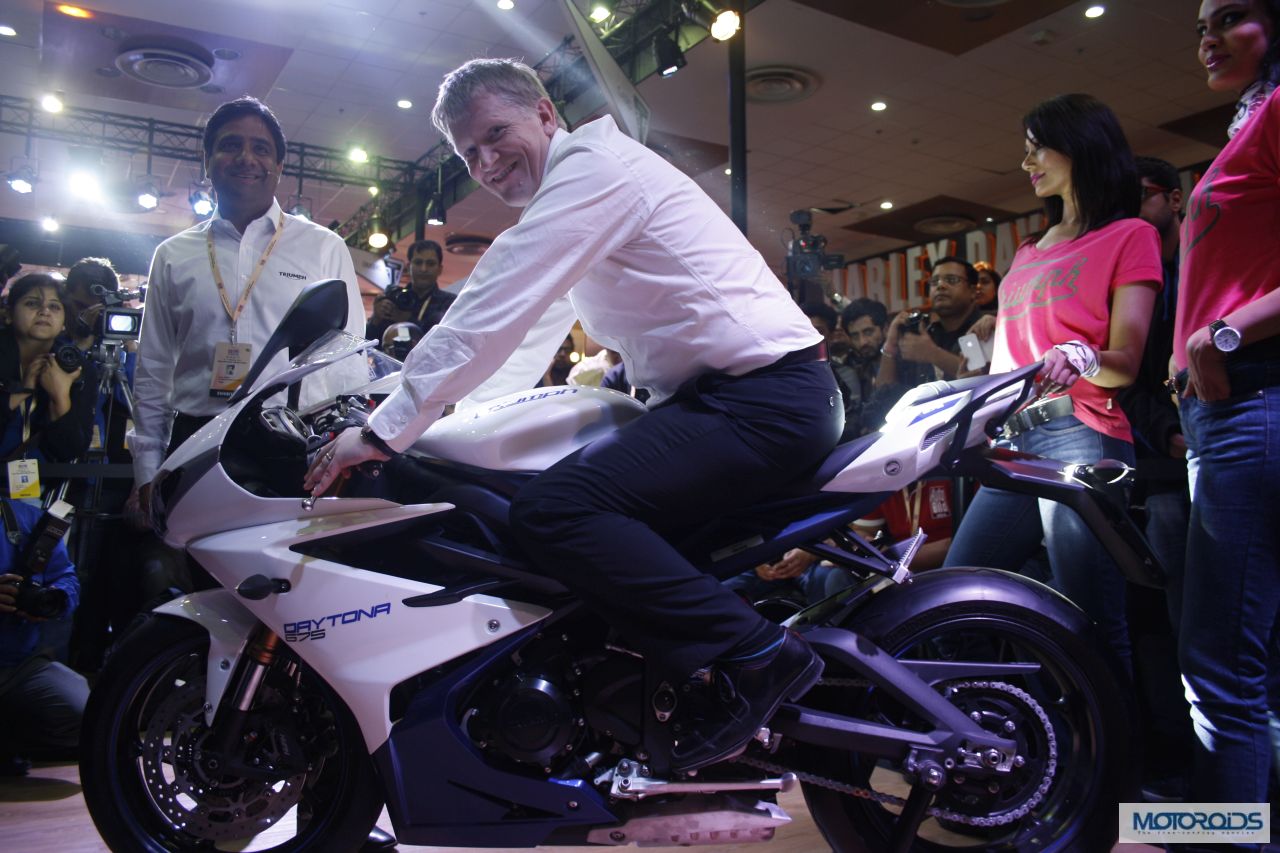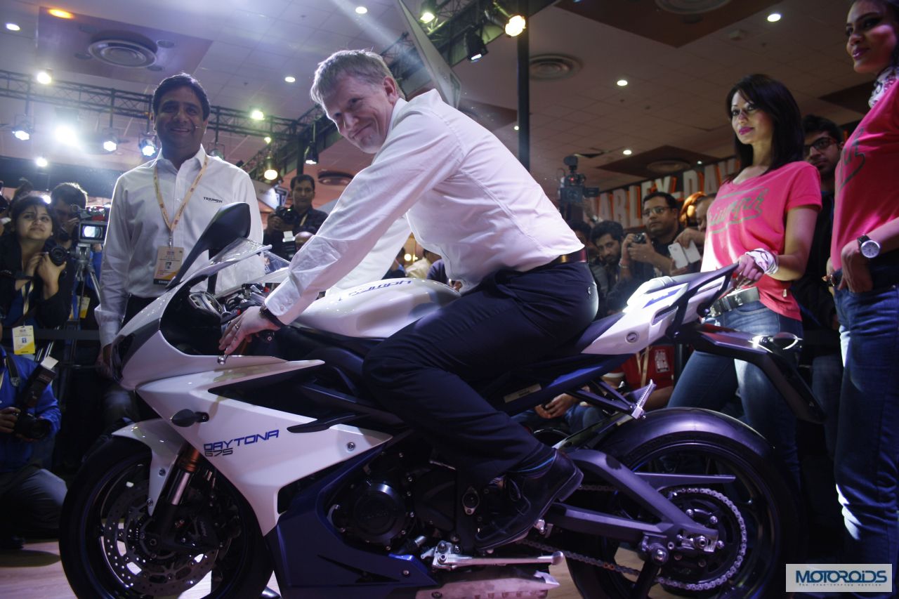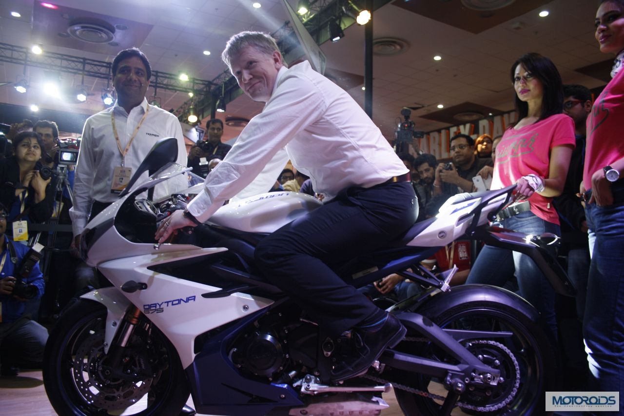 Triumph Motorcycles India Private Limited today launched the Daytona 675 for the Indian market at Auto Expo 2014. The Daytona 675 is priced at INR 10.15 lakh (ex-showroom price: Delhi). Powering the Daytona 675 is a 675cc triple cylinder engine with a peak power output of 131PS @ 12500 rpm and peak torque rated at 74NM @ 11900 rpm