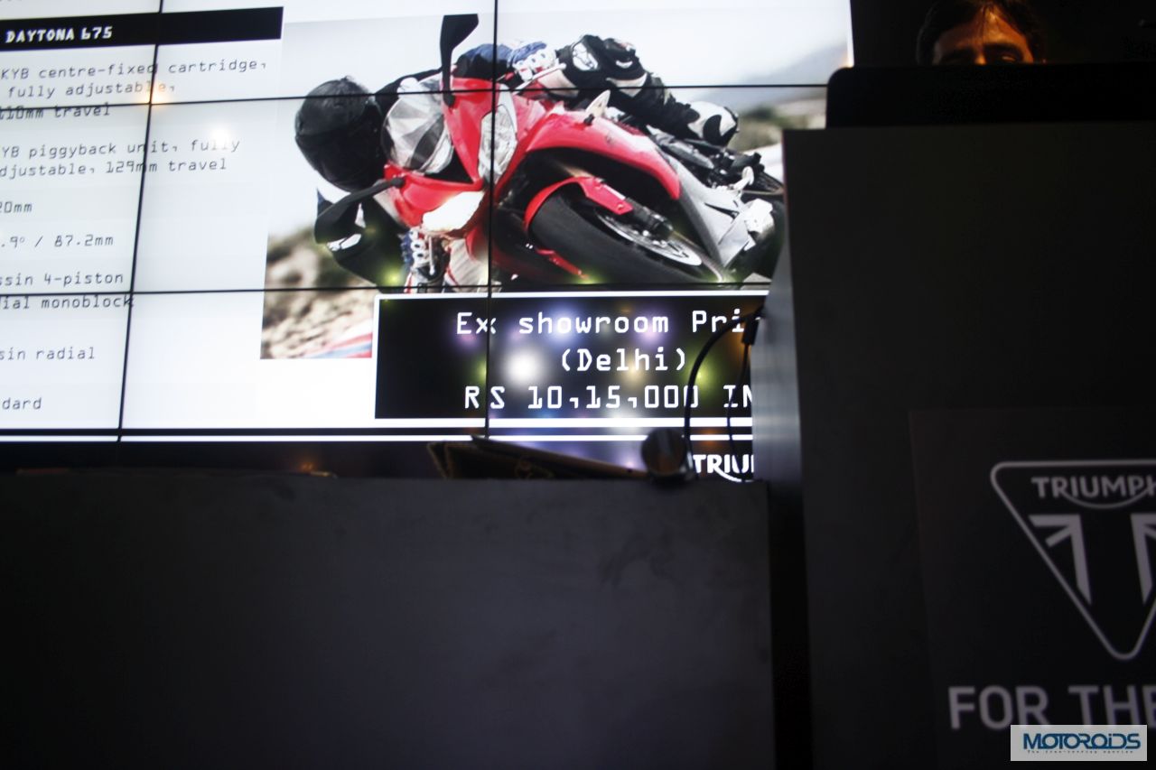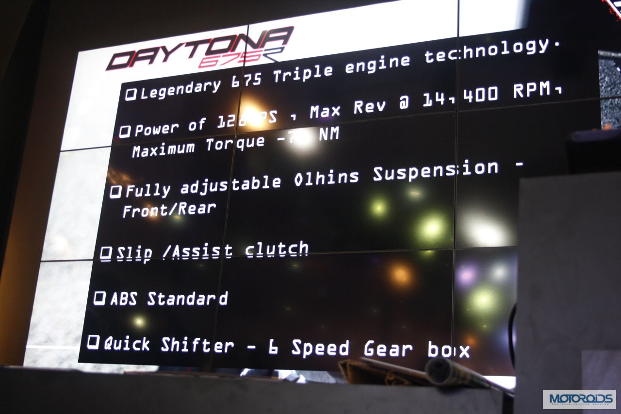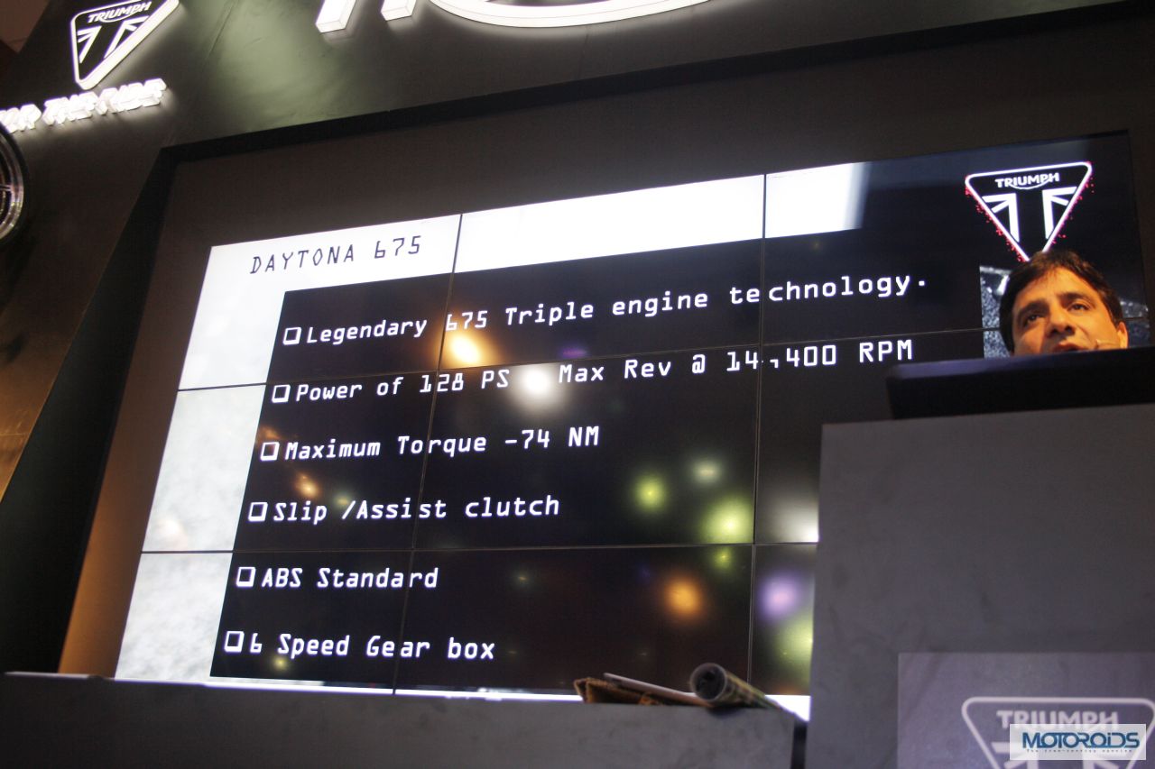 Triumph Motorcycles India Private Limited today launched the Daytona 675 for the Indian market at Auto Expo 2014. The Daytona 675 is priced at INR 10.15 lakh (ex-showroom price: Delhi). Powering the Daytona 675 is a 675cc triple cylinder engine with a peak power output of 131PS @ 12500 rpm and peak torque rated at 74NM @ 11900 rpm