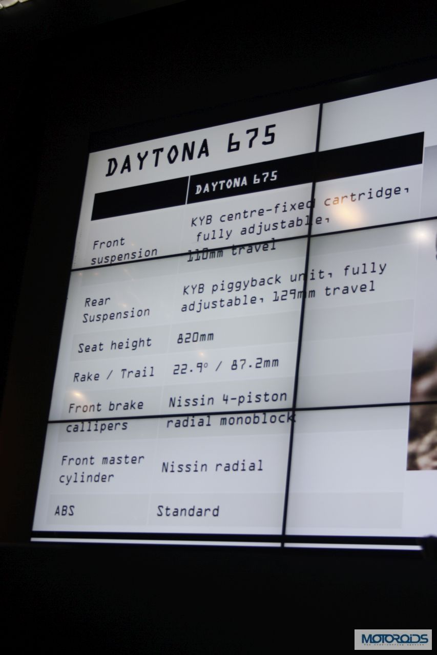 Paul Stroud, Director Sales & Marketing (Global), Triumph Motorcycles Pvt. Ltd. said, ‘India is an exceptionally exciting market for us and the premium motorcycle segment in the country is seeing tremendous growth. With the launch of 11 motorcycles across 5 distinct model families including classic, cruiser, super sports, roadsters and adventure segments, Triumph is already enjoying a great response from the Indian market. Since launch over 100 sold orders have been taken, and now with the launch of the Daytona 675 this will give us further opportunity to grow. We are looking at a target of 500 motorcycles in first 6 months, 1000 by year-end and 1500 by mid 2015′