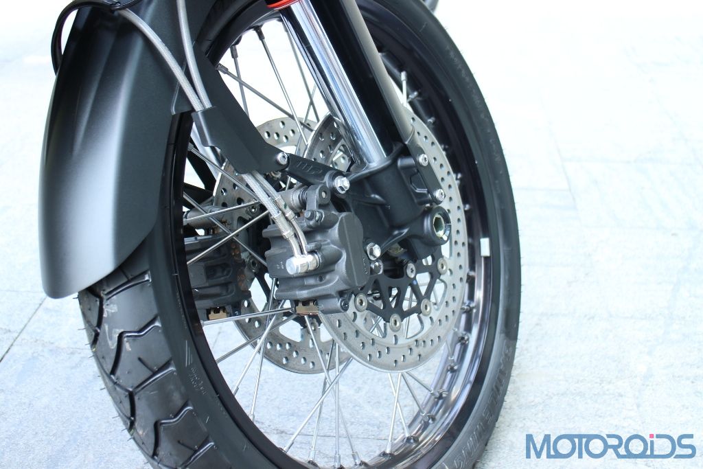 The Triumph Tiger XCx receives 21-inch spoked wheels and better ground clearance that gives it good off-road riding capabilities.