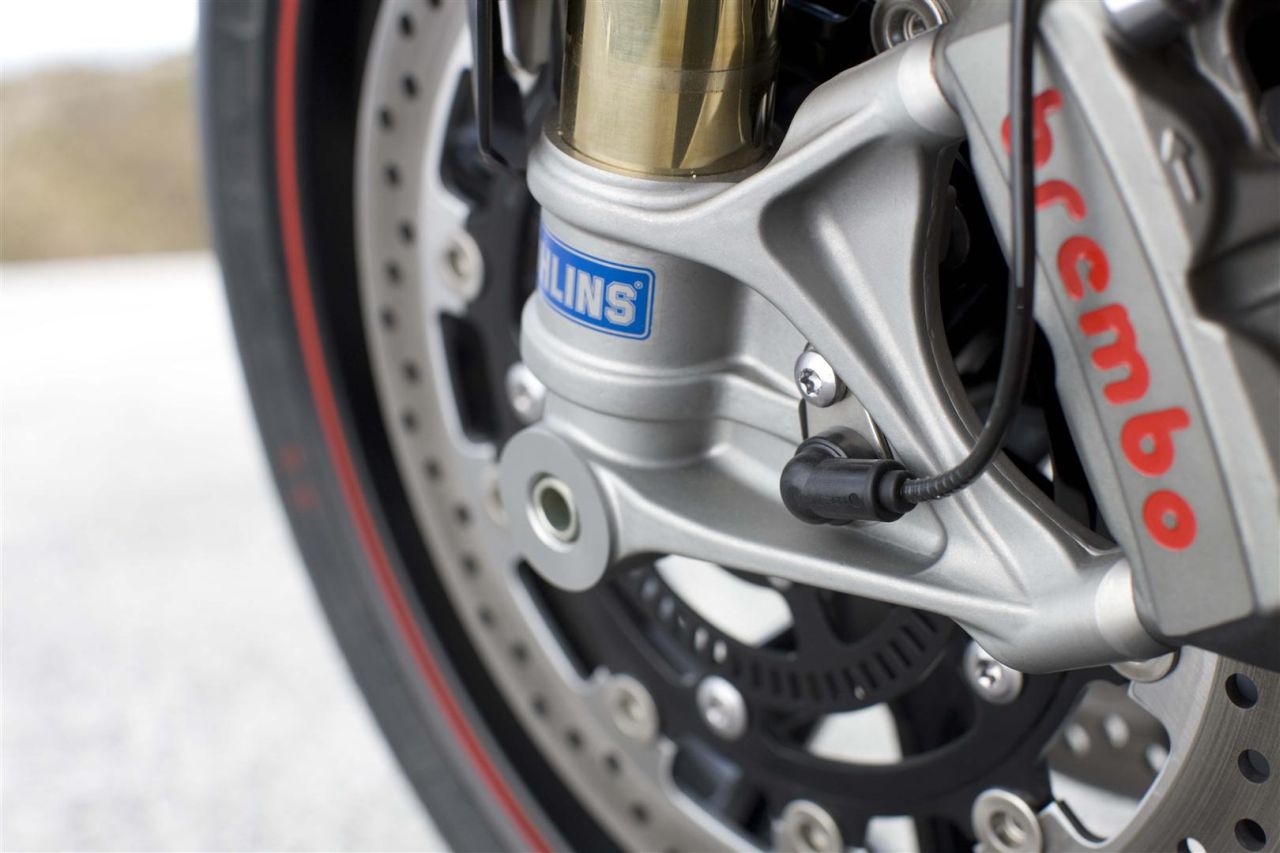 Rest of the technical data of the Speed Triple R remains identical with the standard model but instead of the Showa suspension, the Speed Triple R benefits from Öhlins shock absorbers. The front receives Öhlins 43mm NIX30 upside down forks while the rear is equipped with Öhlins TTX36 twin tube Monoshock. Both, the front and rear suspenion,  come with rebound and compression damping. ABS, similar to the standard Speed Triple, comes as standard on the Speed Triple R and here too, you can switch it off in case you are feeling a little adventurous.
