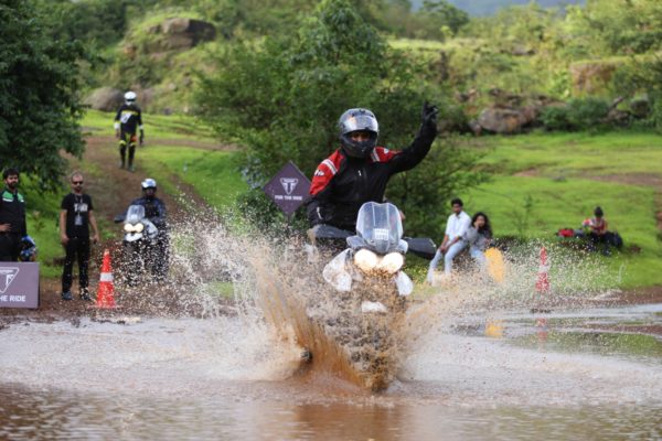 With the safety briefing and riding tips out of the way, we headed out to explore the specially-designed trail on foot to understand the terrain. The training comprised of manoeuvring, water-wading, riding on incline surfaces and through muddy terrain. Unlike tarmac, off-roading involves a different style of riding. So instead of leaning into a turn, as you’d do on a regular day around a canyon, you’d have to take your body on the opposite side of the lean. Here’s a graphic that’ll help you understand the technique – left is for road/track riding while right is for off-roading.