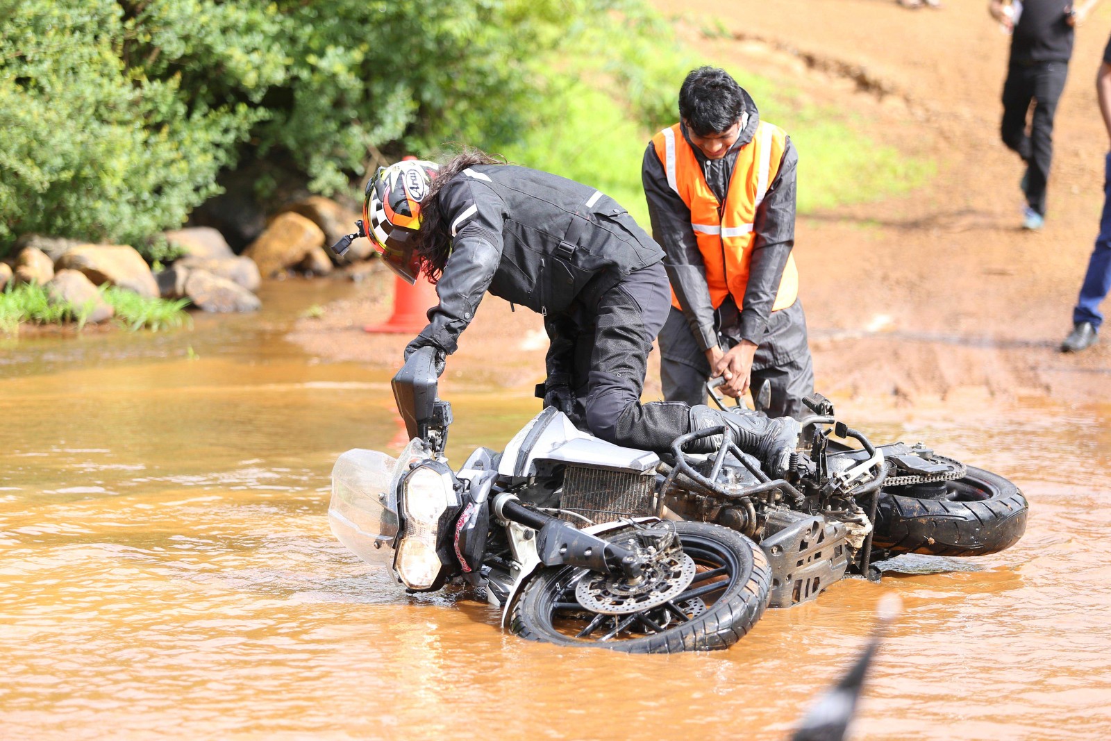 To start off, check your motorcycle. Inspect crucial elements such as the tyre, brakes and electricals. Clean and lube the chain properly before heading out. Check the oil and coolant levels and top them up if required. A proper riding gear is important, especially while going off-road as the chances of you crashing are more. Your gear must comprose of a DoT / ECE certified full-face helmet (preferably a motocross helmet), mesh jacket, gloves, riding pants, and full length motocross boots. Keeping yourself hydrated is important so make sure to get yourself a hydration backpack with a decent water storage pouch.