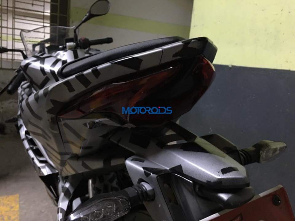 The motorcycle features a step-up split seat and going by the images, it appears to be a well cushioned saddle. We’re not sure how comfortable that pillion seat will be and we’d talk more about that once we get to ride the motorcycle. The test mule did not feature a pillion grab rail and going by the design of the rear panel, it isn’t likely to get one. The pillion rider will either have to take the support of the rider or use the seat mounted belt.