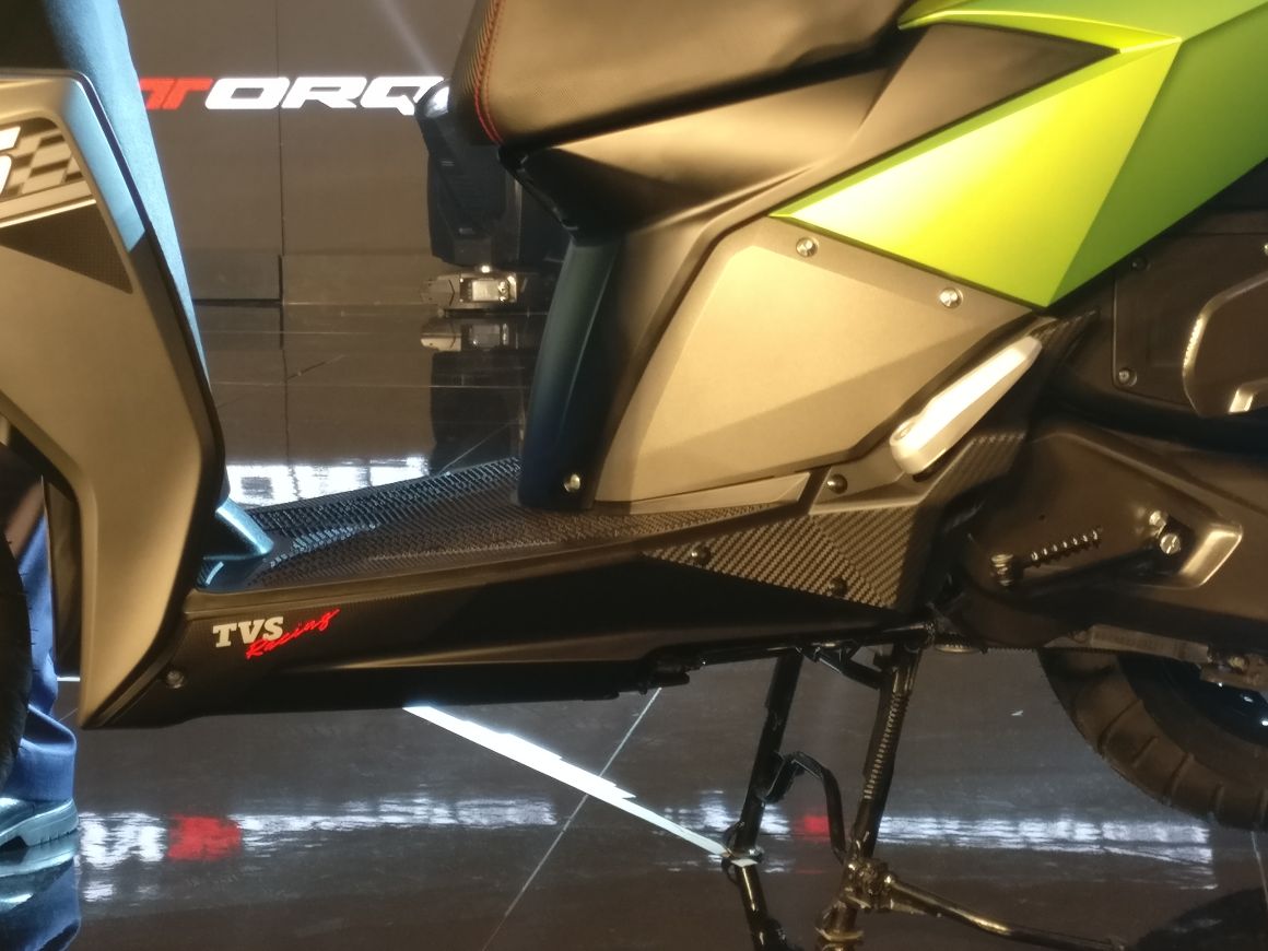 - Four different colour options available. The NTORQ gets telescopic front forks, twin-tube gas charged rear shock absorber and Tubeless Tyres