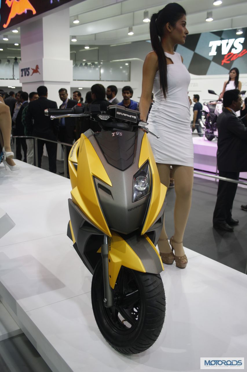 In addition to the stunning Draken motorcycle concept, TVS also showcased the fab looking Graphite scooter at the 2014 Auto Expo. The uniquely styled scooter with an offset, ‘winking’ headlamp looked sharp and trendy.