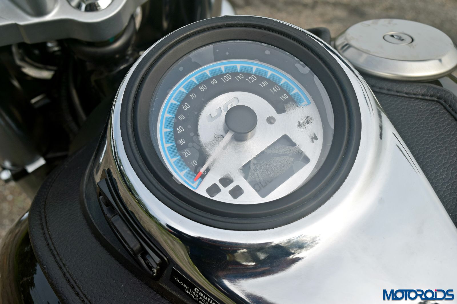 The keyhole occupies the space behind the windscreen while the instrument console is placed on a neatly carved chrome panel that sits on the 18-litre fuel tank. On left side of the fuel tank placed panel is a USB port that gets a rubber cover to keep water and other elements out. You’d also get a small, faux leather storage on the fuel tank which can be used to keep your smartphone while charging it using the USB port on the fuel tank, or for storing motorcycle documents or your driving license. The faux leather cover, which also mounts the storage, runs across the length of the fuel tank. The compact instrument console displays an analogue speedometer, while a small digital screen shows the odometer, trip meter, fuel gauge and a gear indicator. Telltale indicators are placed next to the digital display. The fuel filler cap is placed asymmetrically, on the right side of the instrument console.