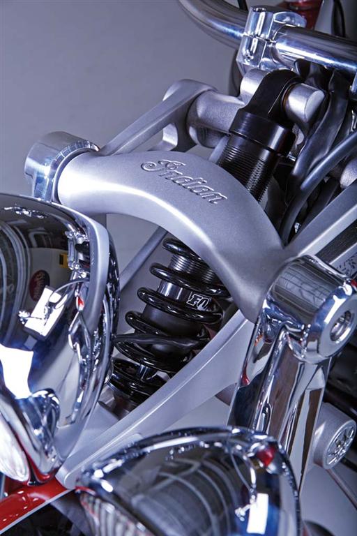 The custom motorcycle features a custom paint scheme and a billet girder front fork. The billet aluminum girder brings back memories of the Indian Motorcycles of the 1930s and 40s- which though complicated in design was rugged enough to serve the US Army during the World War II. The girder fork sports fully machined uprights and sand-blasted billet cross members riding on a custom 23-inch front wheel. A custom front valance fender, shock and headlight reminisce and conclude the vintage front look of the motorcycle. The comfort factor has been taken care of by a cantilever mounted classic springer style seat and a single rear shock.