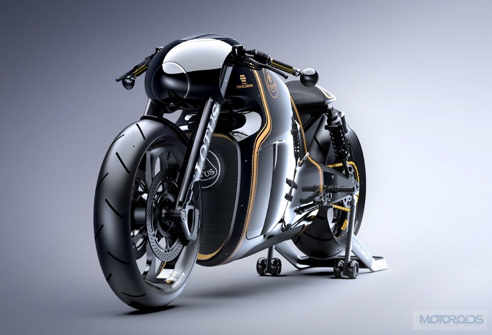 Talking about their new motorcycle, Lotus Motorcycles has said: “The C-01 combines ample power via a V-twin engine with a distinctive body designed by Daniel Simon integrating carbon fibre, titanium and aerospace quality steel.