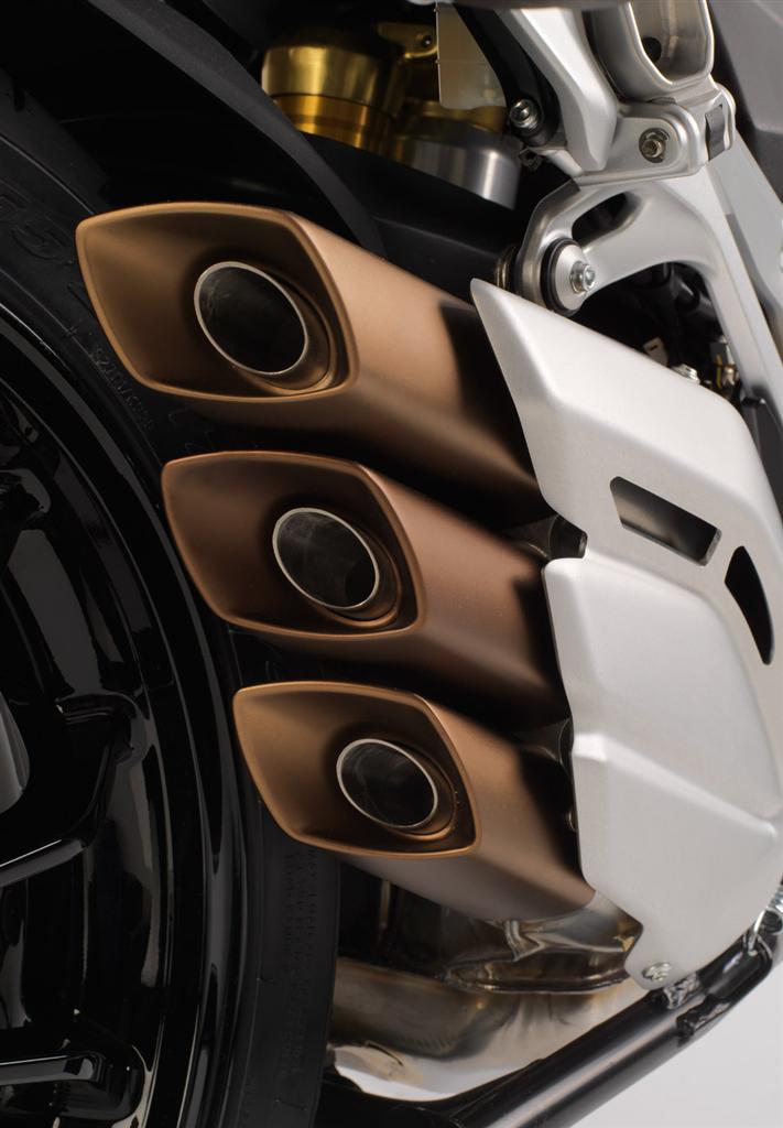 MVICS 2.0 (Motor & Vehicle Integrated Control System) with three injectors. Engine control unit Eldor EM2.0, throttle body full drive by wire Mikuni, pencil-coil with ion-sensing technology, control of detonation and misfire. Torque control with four maps. Traction Control with eight levels of intervention Electronic quick shift MV EAS 2.0 (Electronically Assisted Shift)