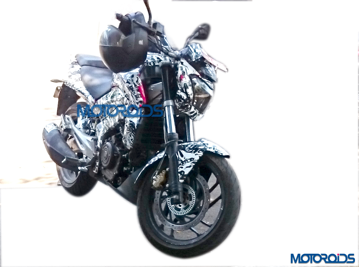 One of our readers updated us with a spy image of the upcoming CS400 in April this year which revealed finer details about this upcoming Pulsar. Previous spy image revealed that the Pulsar CS400, visually, will stay exactly similar to the concept motorcycle showcased at the 2014 Auto Expo. However, the motorcycle will receive a slightly watered down headlamp cluster and a conventional telescopic front suspension.