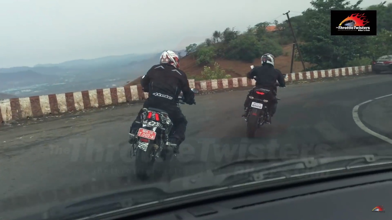 The highly anticipated Bajaj Pulsar CS400 was once again caught on camera by the folks at ThrottleTwisters. The test mule, accompanied by a Kawasaki Versys 650, was doing test runs on the twisties of Lonavala, between Pune and Mumbai. This time though, the camouflaged test mule was not racing with other motorcycle.